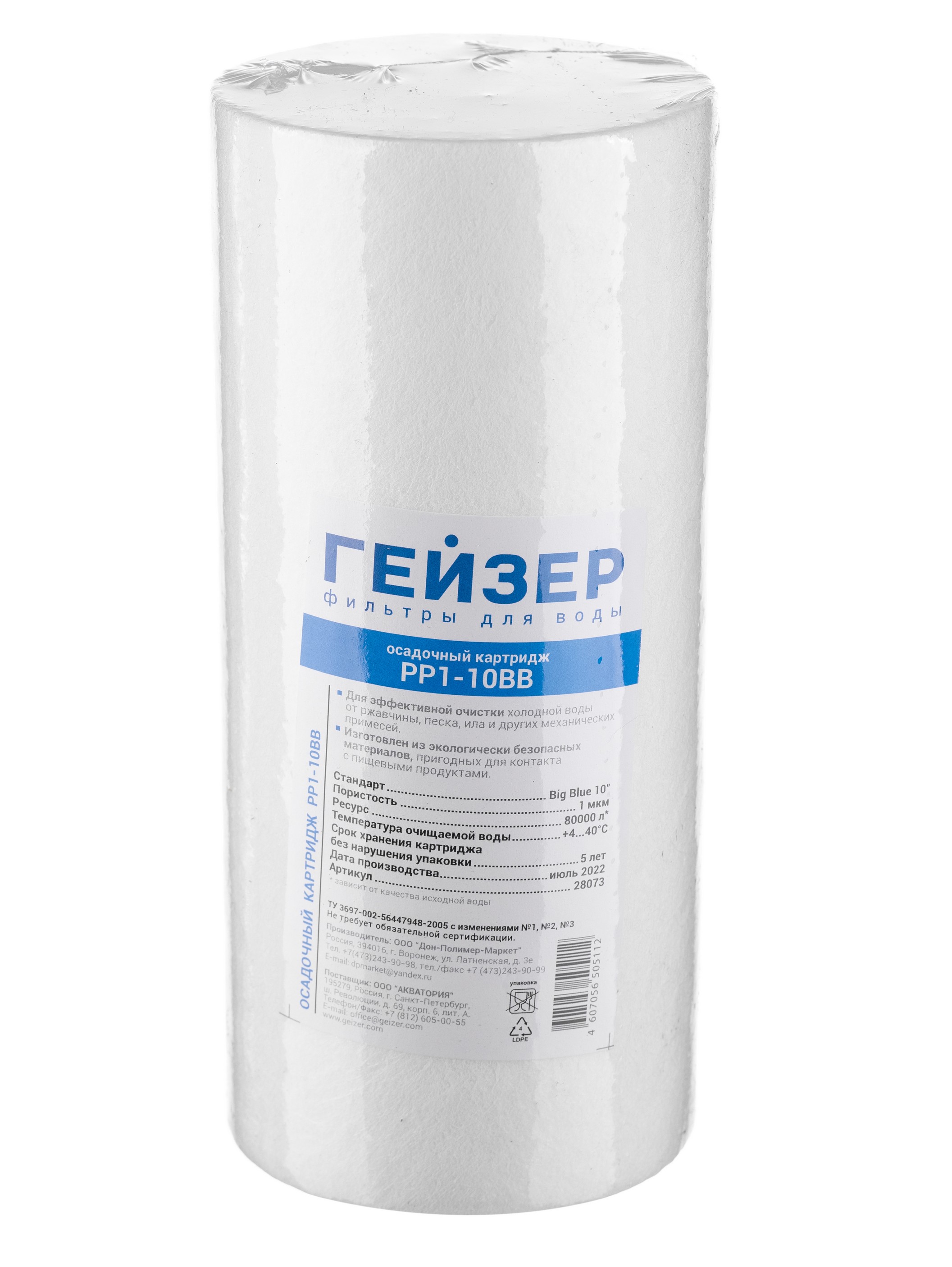 PP 1 - 10ВВ - картридж из вспененного полипропилена, предназначен для механической очистки воды от ржавчины, грязи, песка и других нерастворимых примесей размерами более 1 мкм. Восстановлению не подлежит, после окончания ресурса заменяется на новый.