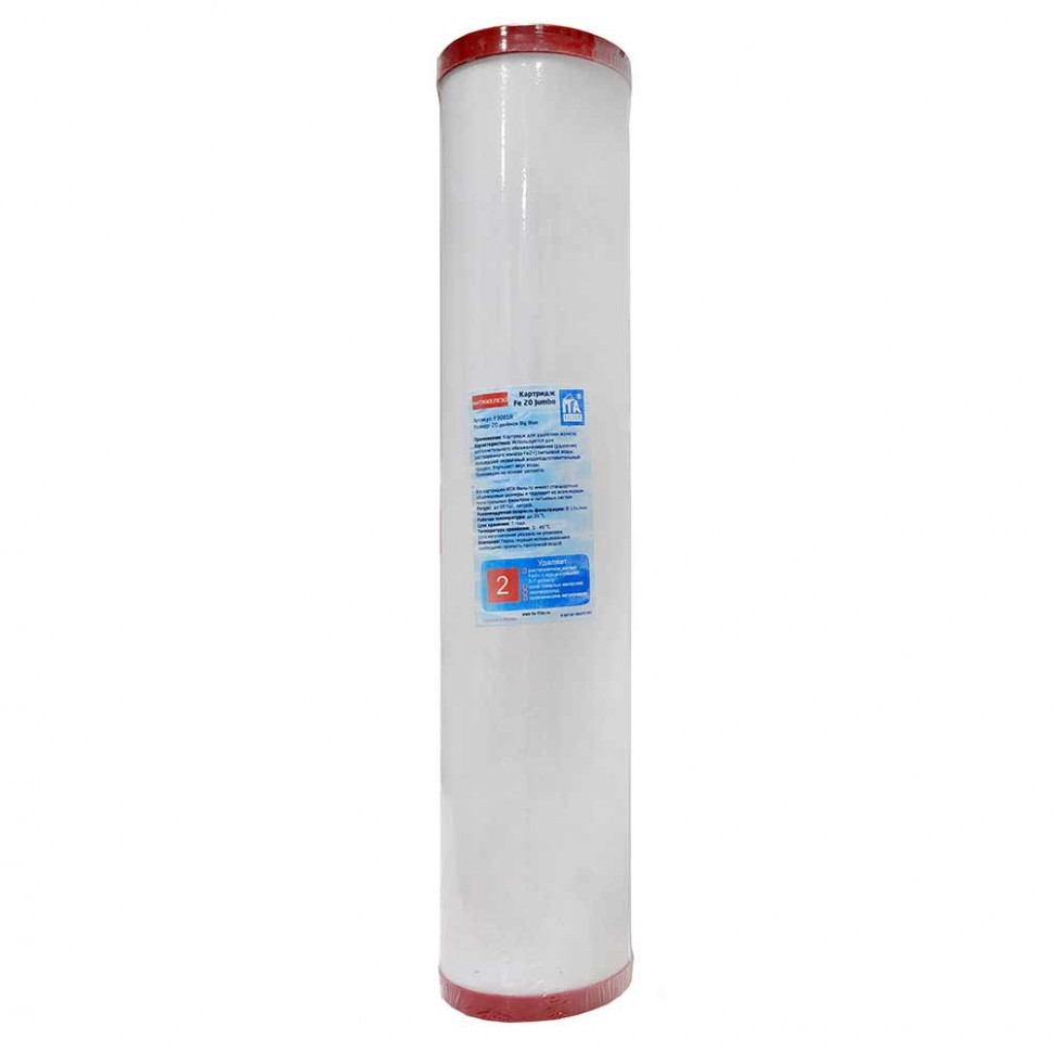 Картридж ИТА ФИЛЬТР Fe-20Jumbo антижелезо F30818 применяется в магистральных фильтрах и служит очистки воды от двухвалентного железа (до 5-7 мг/литр), сероводорода, органических веществ, а также корректирует рН воды.