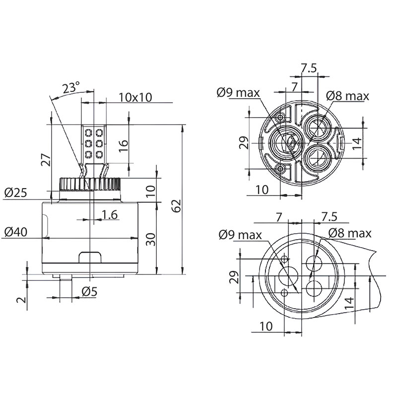 Картридж для однорукого смесителя диаметром 40мм с функцией экономии воды 3 положения.