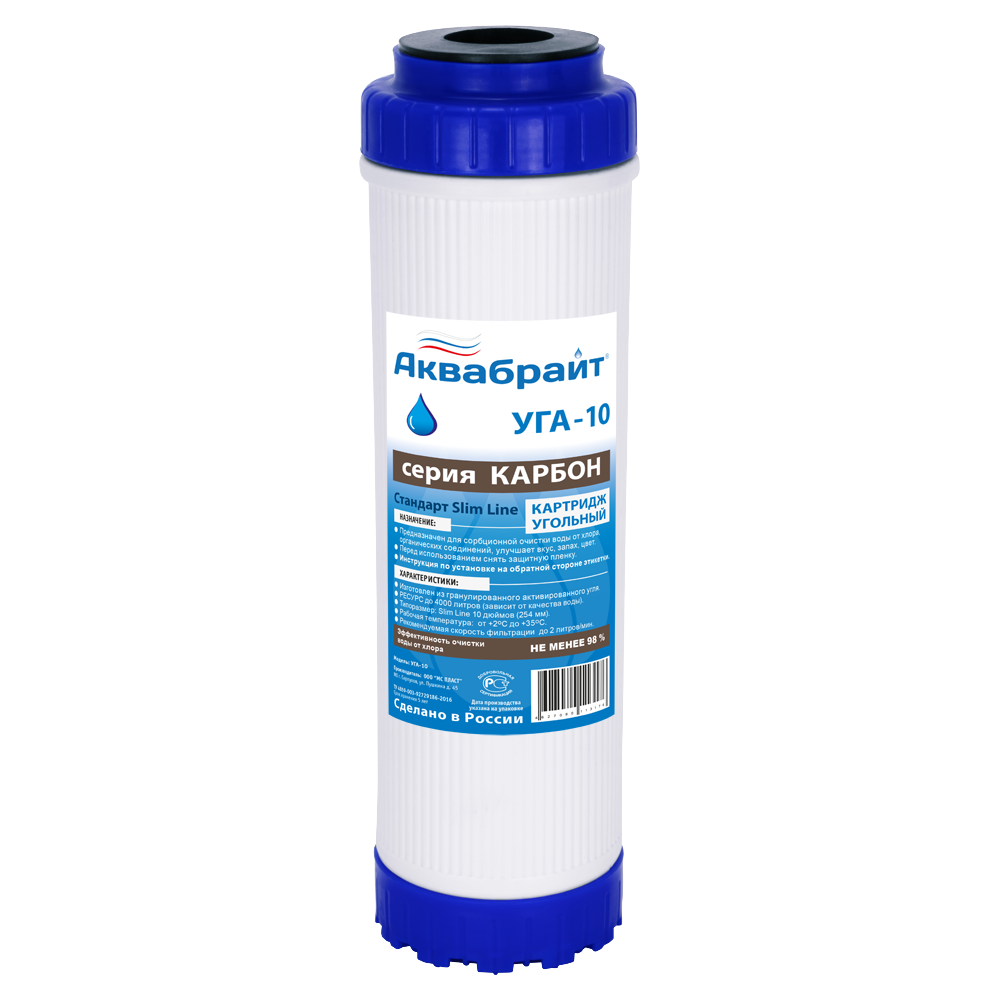 Картридж угольный Аквабрайт УГА-10 10SL (гранулированный активированный уголь, для холодной воды) (УГА-10)