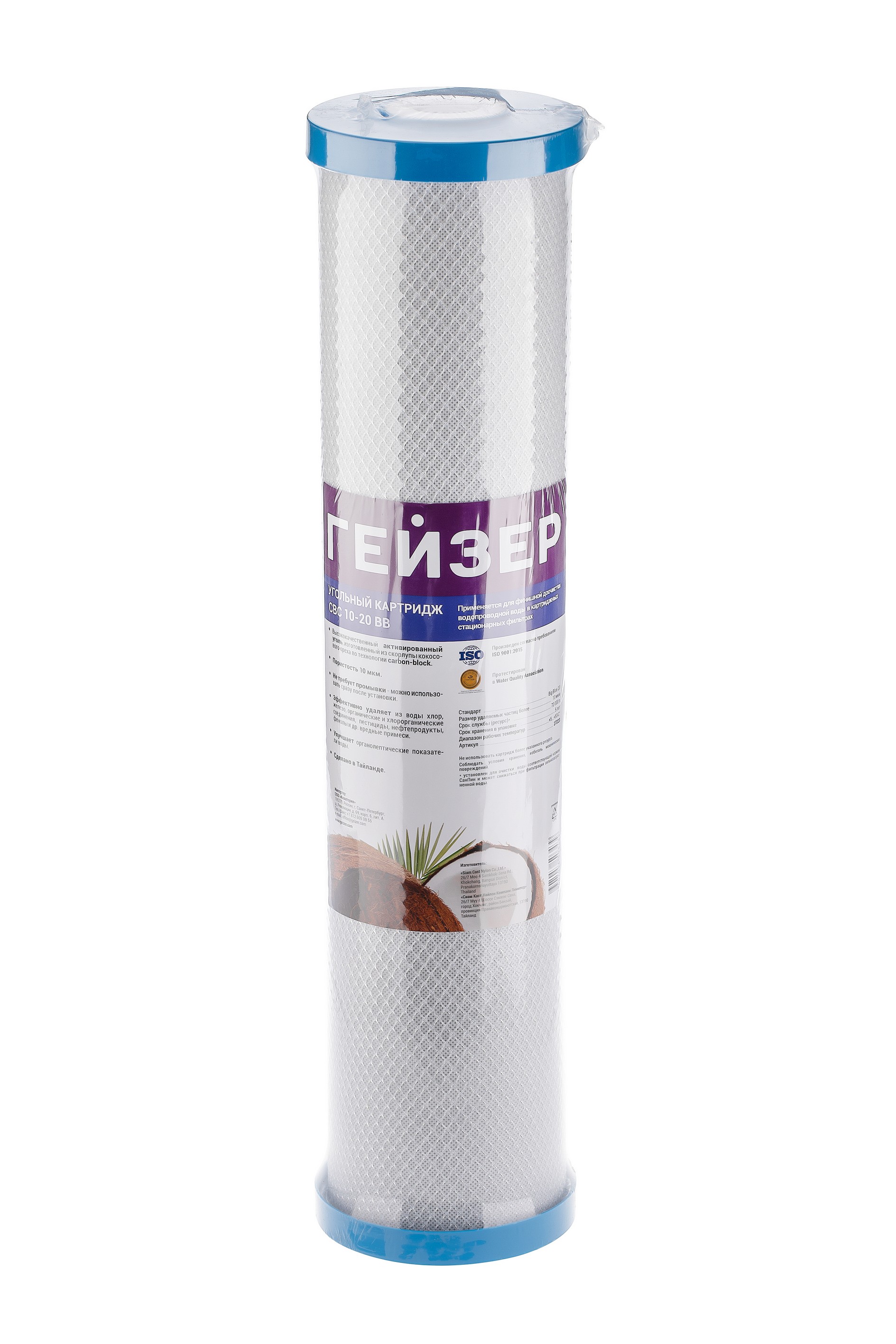 Картридж CBC 10 – 20ВВ изготовлен из высококачественного кокосового активированного угля по технологии карбон-блок, что обеспечивает глубокую очистку воды от хлора, органических и хлорорганических соединений. Устраняет неприятные запахи и улучшает вкус воды.