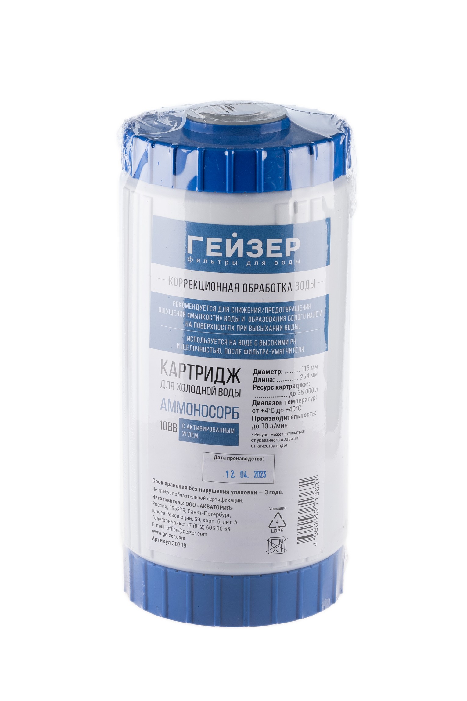 Картридж Гейзер Аммоносорб 10BB предназначен для коррекционной обработки воды. Рекомендуется для снижения/предотвращения ощущения «мылкости» воды и образования белого налета на поверхностях при высыхании воды.