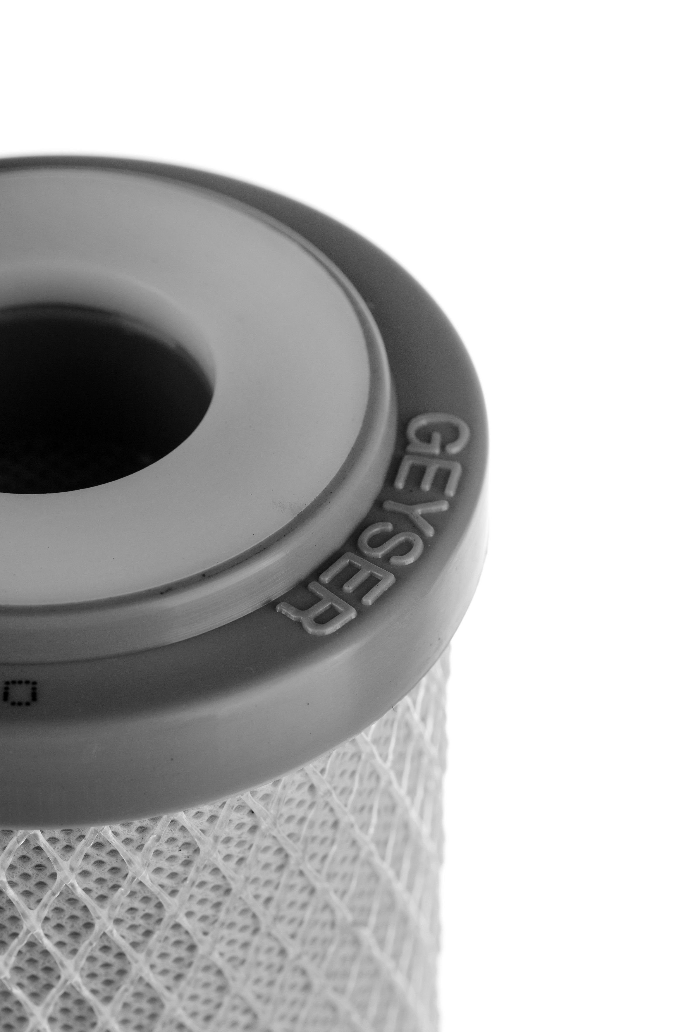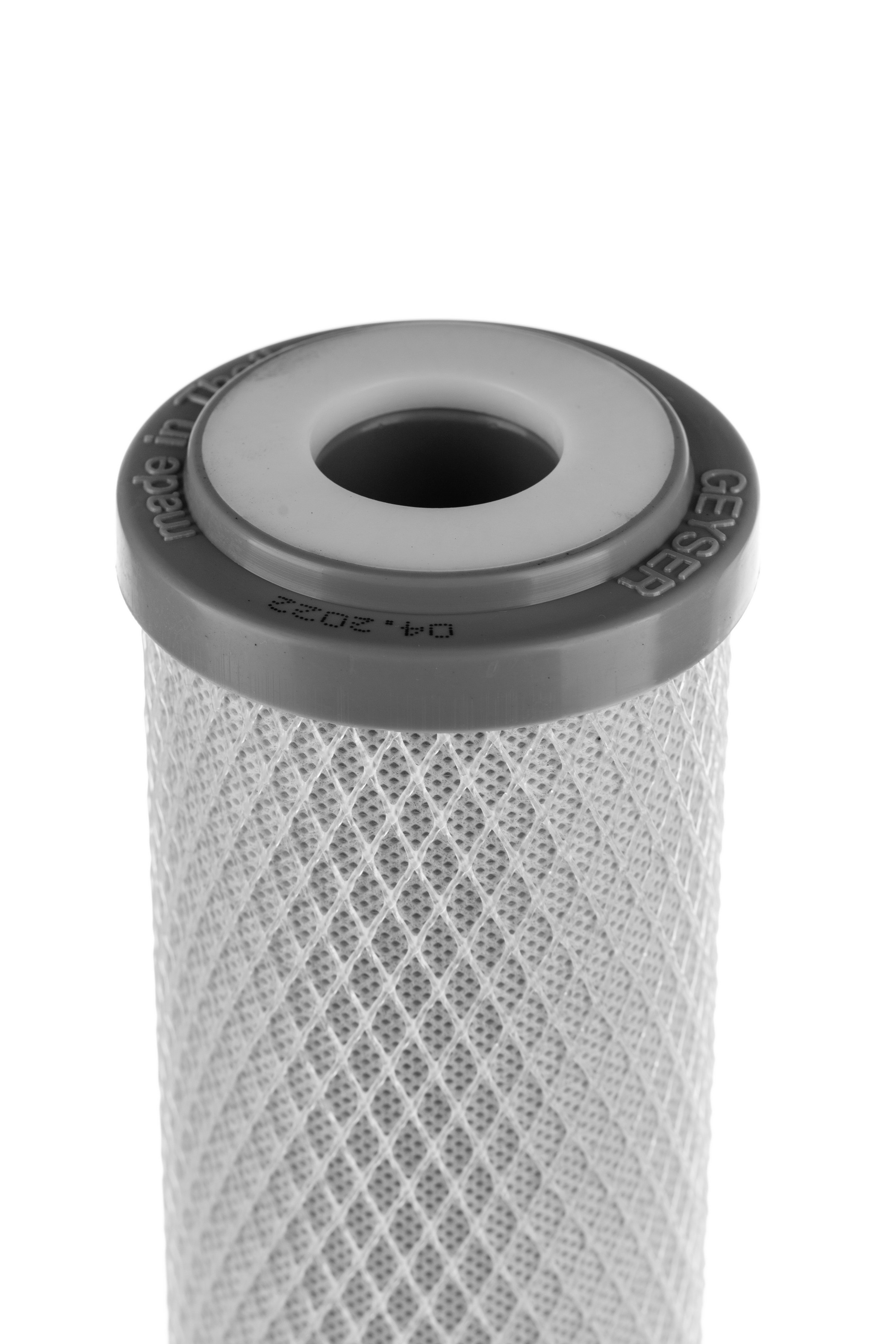 Выполнен из высококачественного кокосового активированного угля по технологии карбон блок. Имеет механический фильтр в виде пропиленовой сетки (5 мкм), исключающей прохождение наружу фильтрующих материалов.