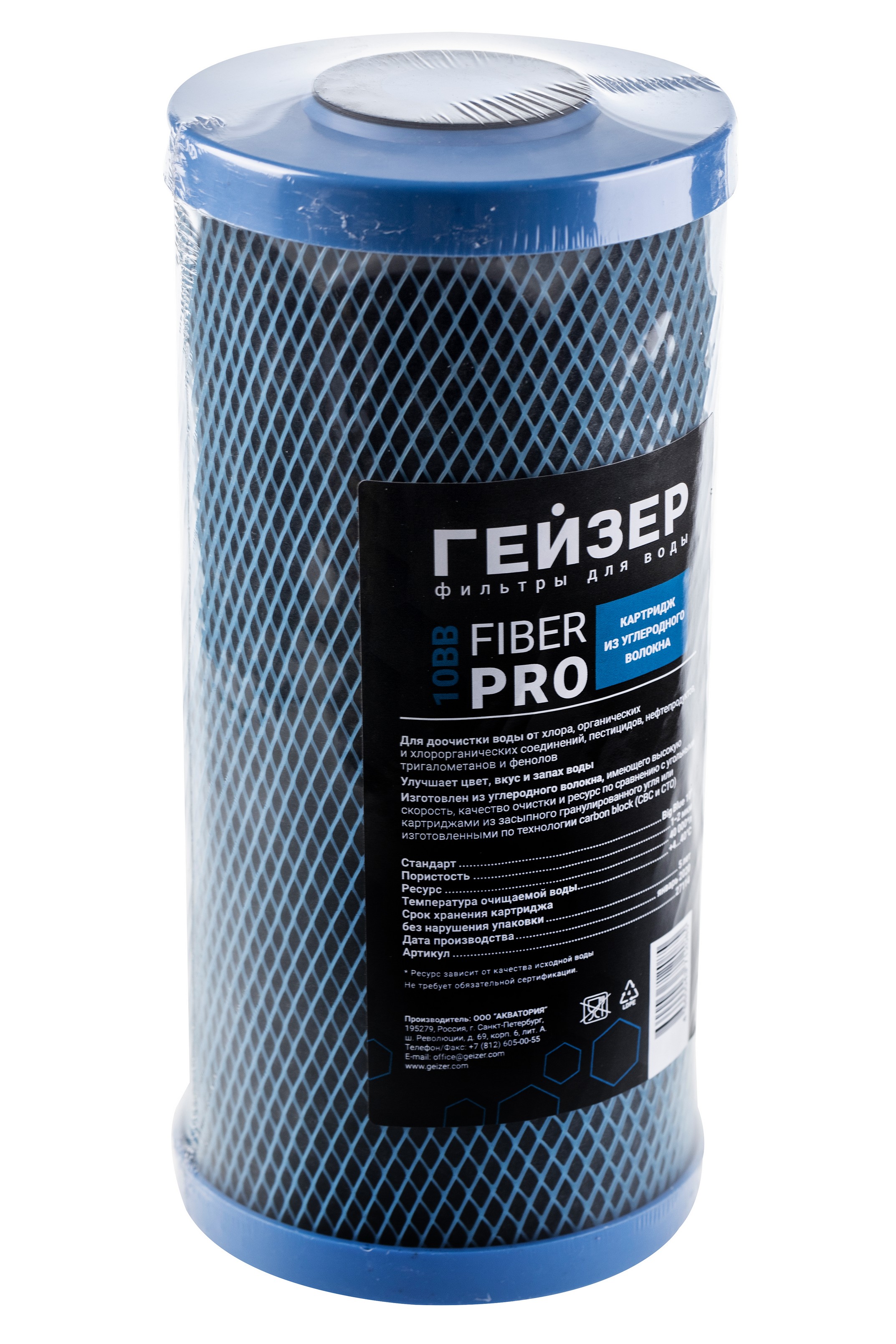 Fiber Pro 10BB – картридж из углеродного волокна. Предназначен для доочистки воды от хлора, органических и хлорорганических соединений, пестицидов, нефтепродуктов, тригалометанов и фенолов. Улучшает органолептические показатели – цвет, вкус и запах воды. Изготовлен из углеродного волокна, имеющего более высокую скорость, качество очистки и ресурс по сравнению с угольными картриджами из засыпного гранулированного угля или изготовленными по технологии Carbon Block (СВС и СТО).