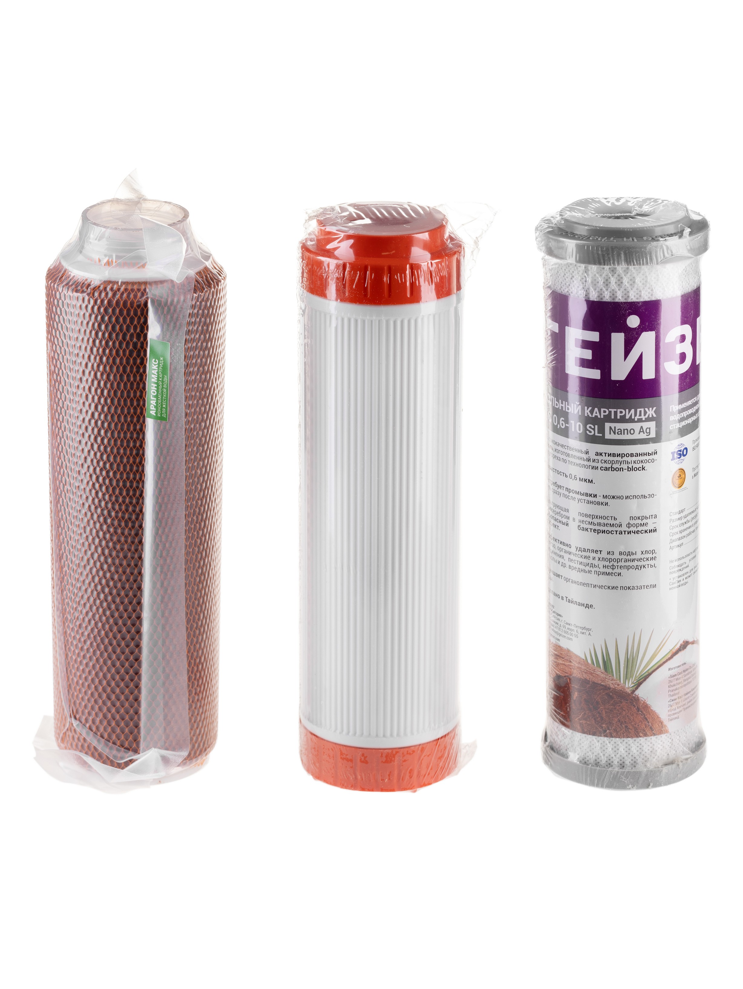 - КАРБОН-БЛОК (третья ступень) - высококачественный активированный кокосовый уголь, выполненный по технологии Карбон-блок, удаляет оставшиеся органические примеси и улучшает органолептические показатели очищенной воды.