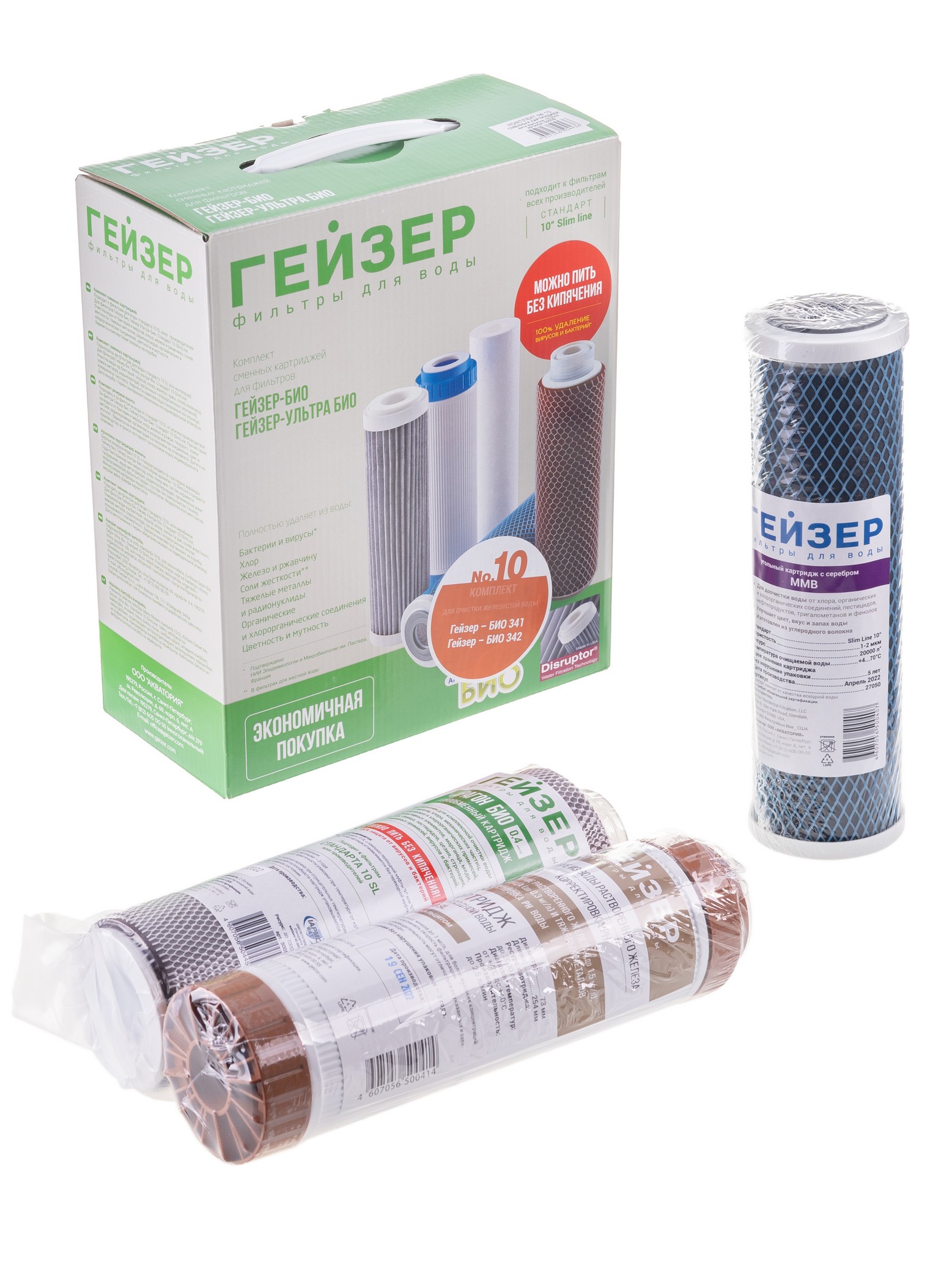 Комплект сменных картриджей №10 предназначен для фильтра Гейзер БИО 341.