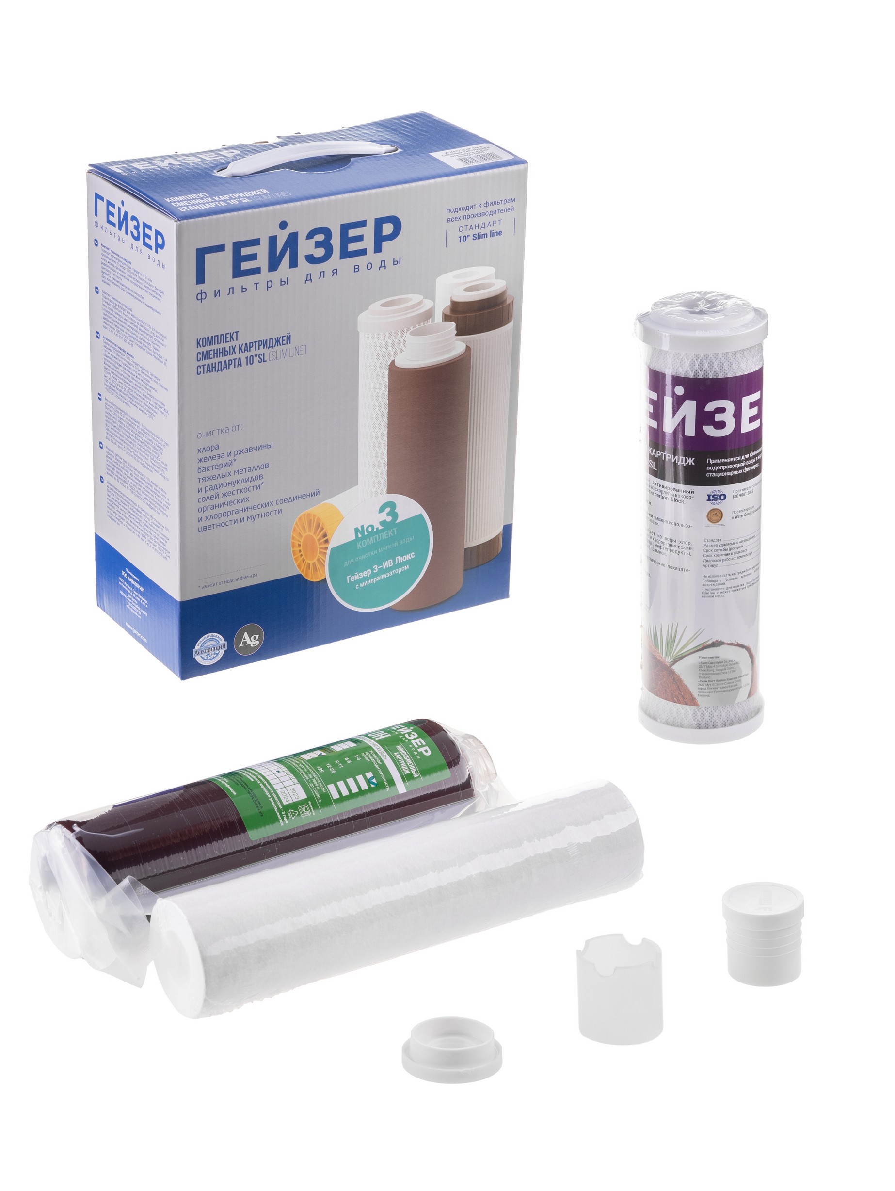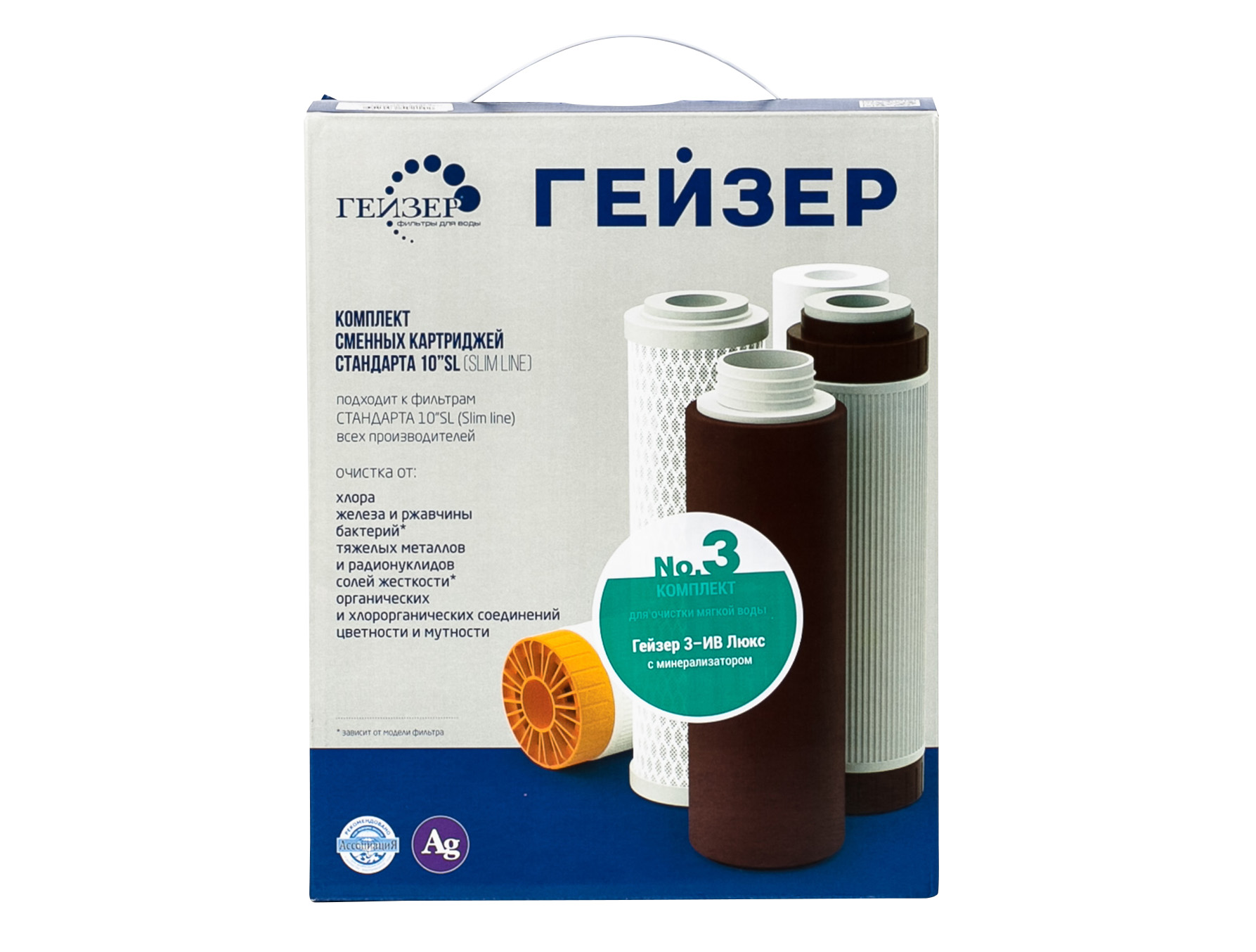 Комплект сменных картриджей №3 предназначен для фильтра Гейзер 3 ИВ Люкс.
