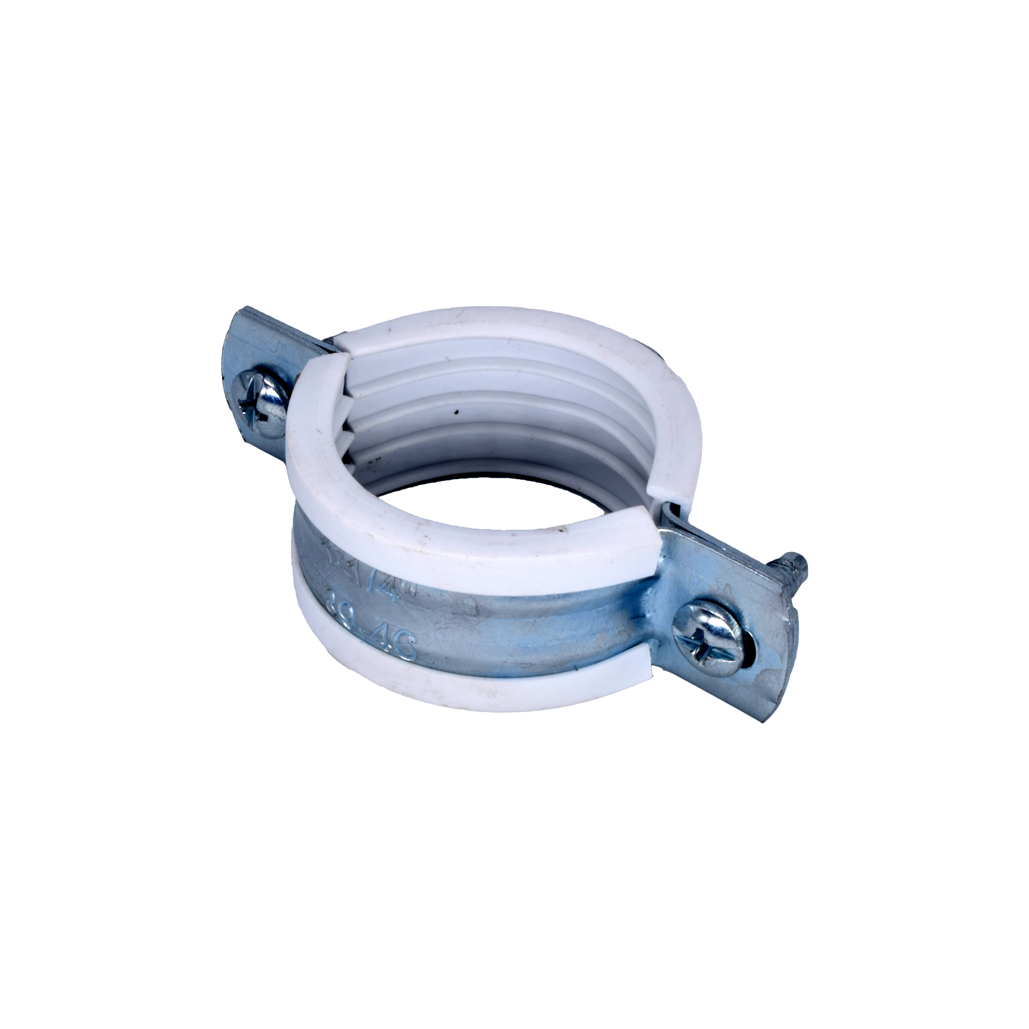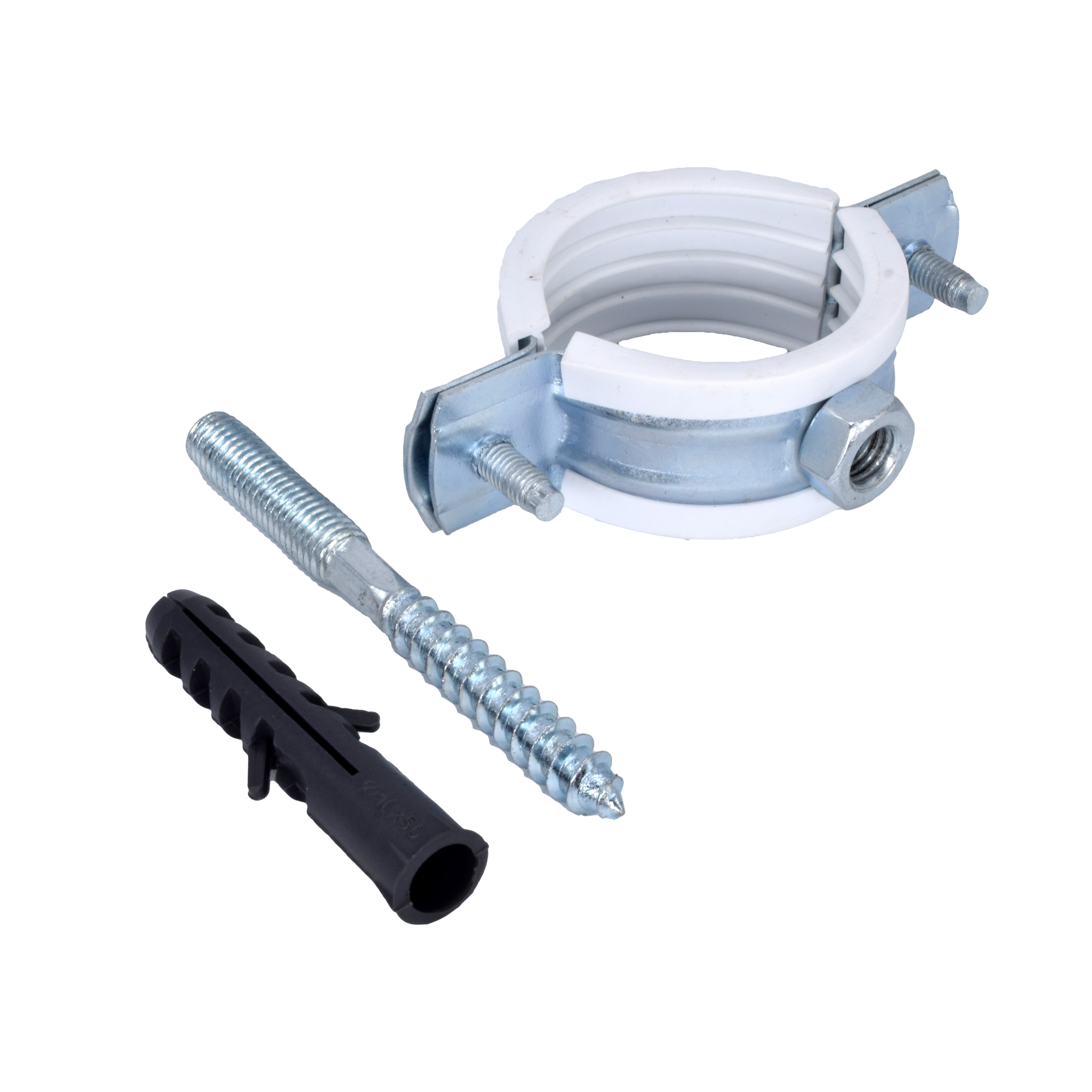 Хомут сантехнический 1 1/4" (39-46 мм) оцинкованная сталь со шпилькой и дюбелем М8 (белый) ПЗМ ХБ02-042