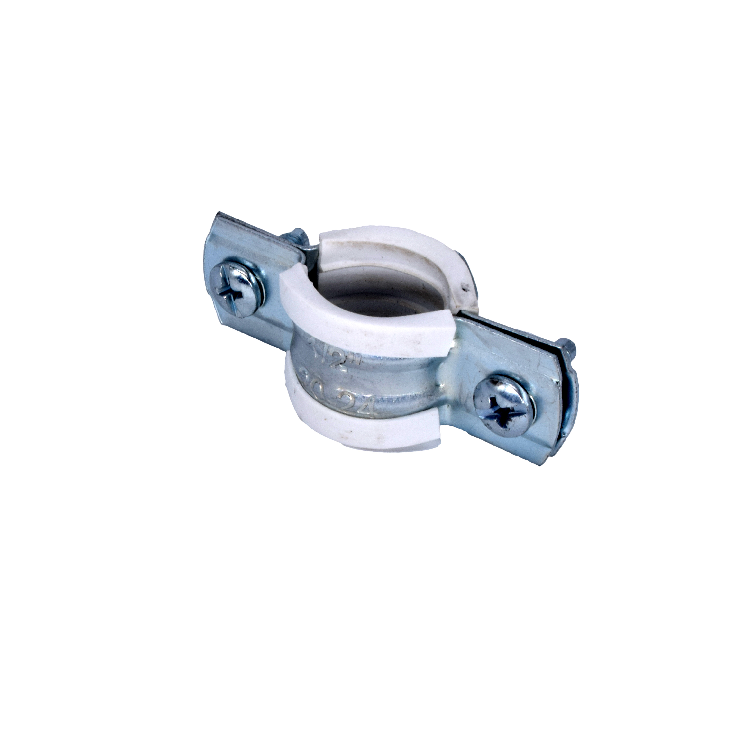 Хомут сантехнический 1/2" (20-24 мм) оцинкованная сталь со шпилькой и дюбелем М8 (белый) ПЗМ ХБ02-022