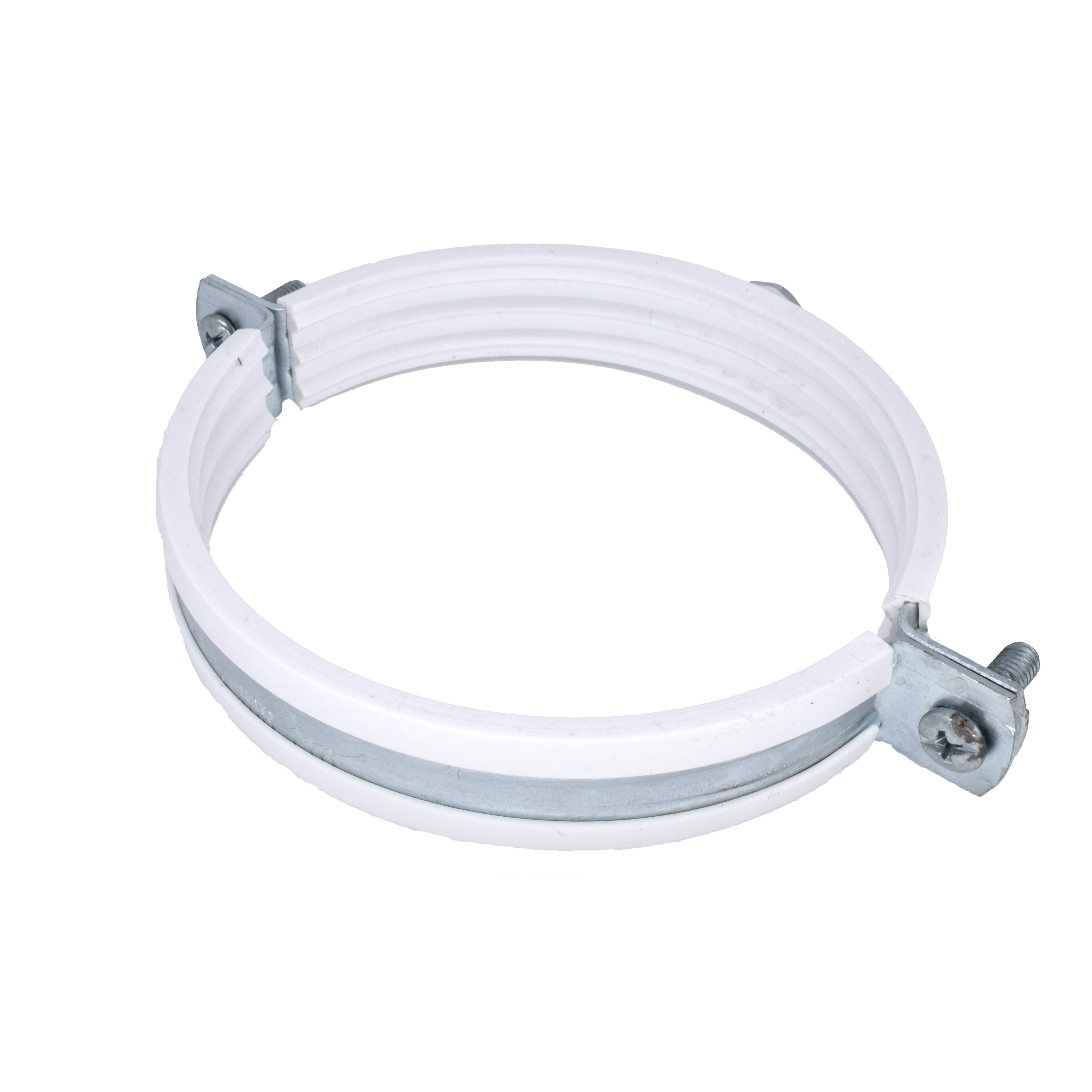 Хомут сантехнический 4" (108-114 мм) оцинкованная сталь со шпилькой и дюбелем М10 (белый) ПЗМ ХБ02-110М10
