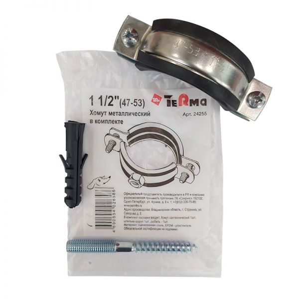 Хомут со штоком и дюбелем 1 1/2" (47-53 мм.) с резиновым уплотнением TeRma (с гайкой M8) (24255)