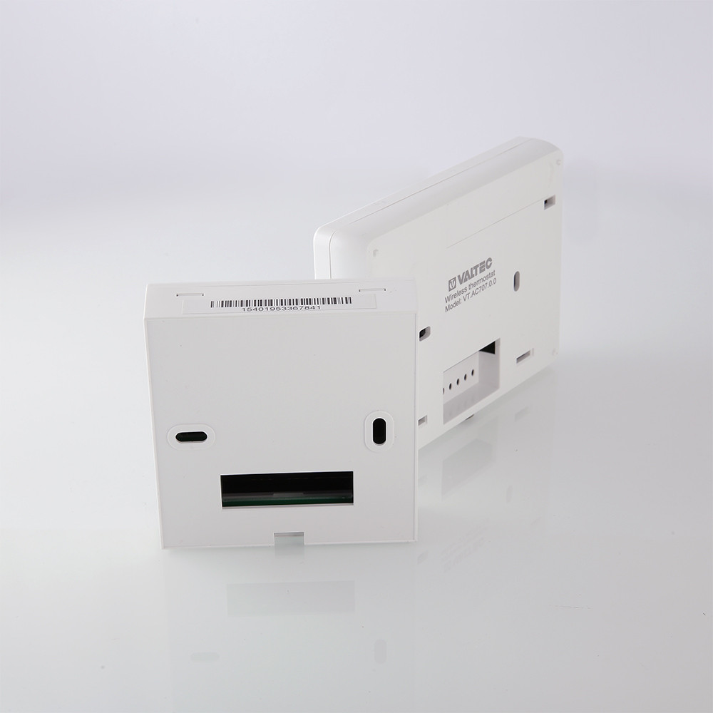 Комнатный беспроводной хронотермостат VT.АС 707 предназначен для автоматического регулирования и поддержания программно заданной температуры воздуха в обслуживаемом помещении путем подачи управляющего сигнала на элементы климатических систем (теплогенератор, сервопривод, насос, вентилятор и т.п.).