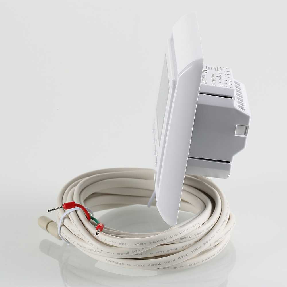 Хронотермостат предназначен для подачи управляющего сигнала (включить/выключить) на регулирующие устройства водяного теплого пола и радиаторного отопления. Управление осуществляется в зависимости от температуры воздуха в помещении (встроенный датчик) и температуры пола (выносной датчик, входит в комплект). Возможны недельное программирование и выбор режима работы – по датчику температуры воздуха или датчику температуры пола. Монтаж термостата производится в стандартную коробку скрытой проводки.