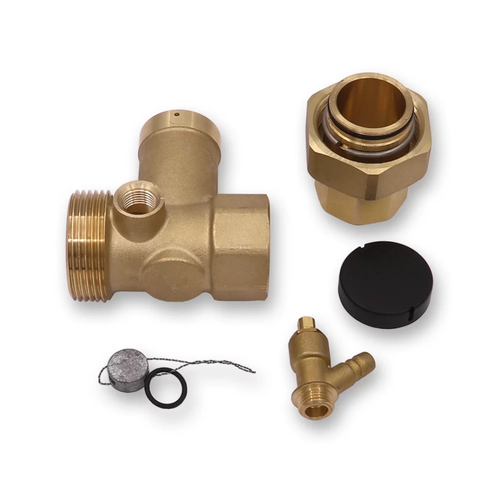 Отсечной клапан представляет собой разборное соединение с запорным клапаном и дренажным краном.