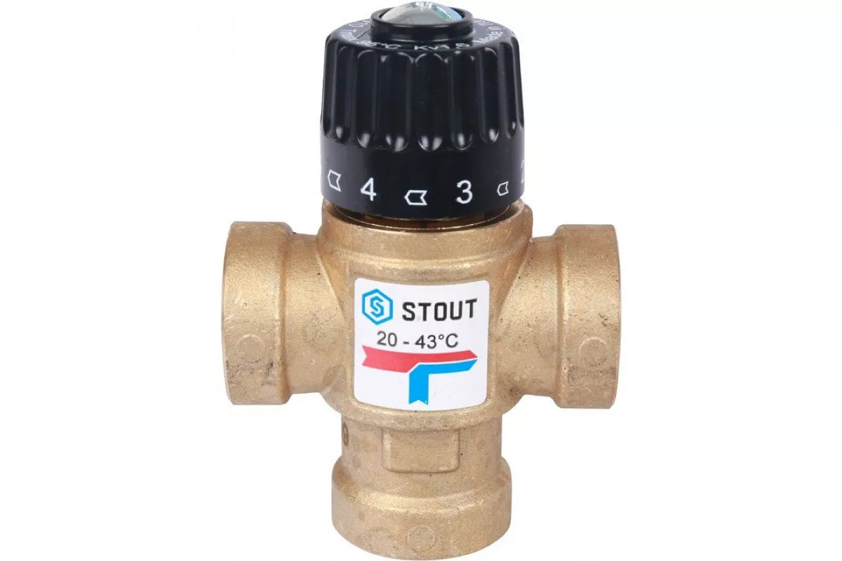 Клапан термостатический смесительный Stout 3/4" ВР 20-43°С KV 1,6 (SVM-0110-164320)