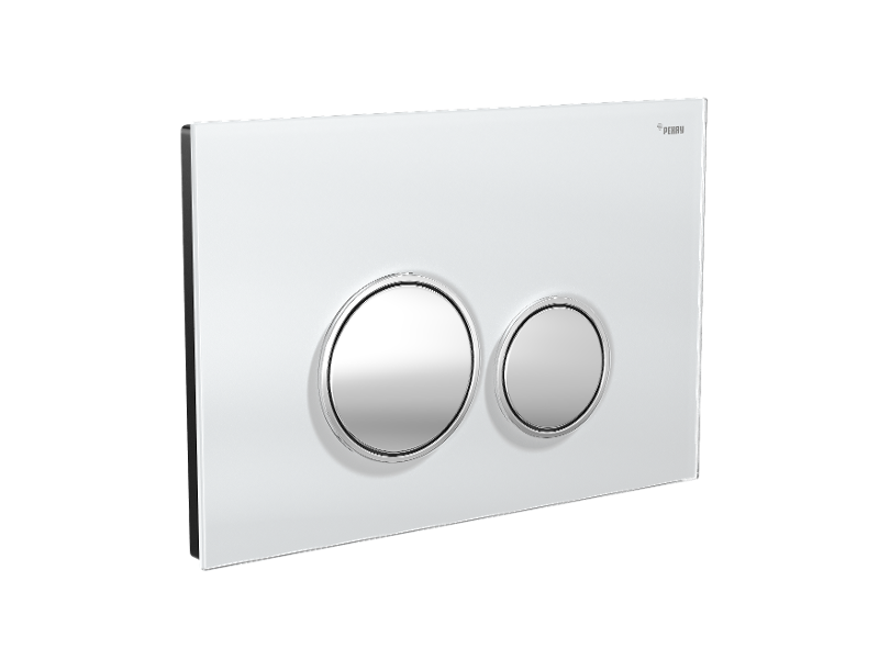 Клавиша смывная РЕХАУ Nova ORB Glass с круглыми клавишами, закаленное стекло, белый, клавиши и их контур хром, глянцевый (19102901001)
