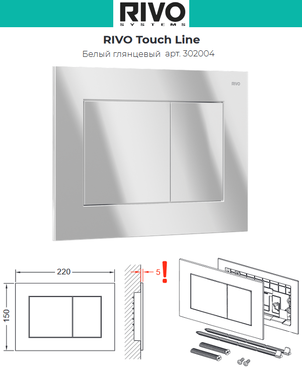 Клавиша смывная Rivo Touch Line белый глянцевый (302004)