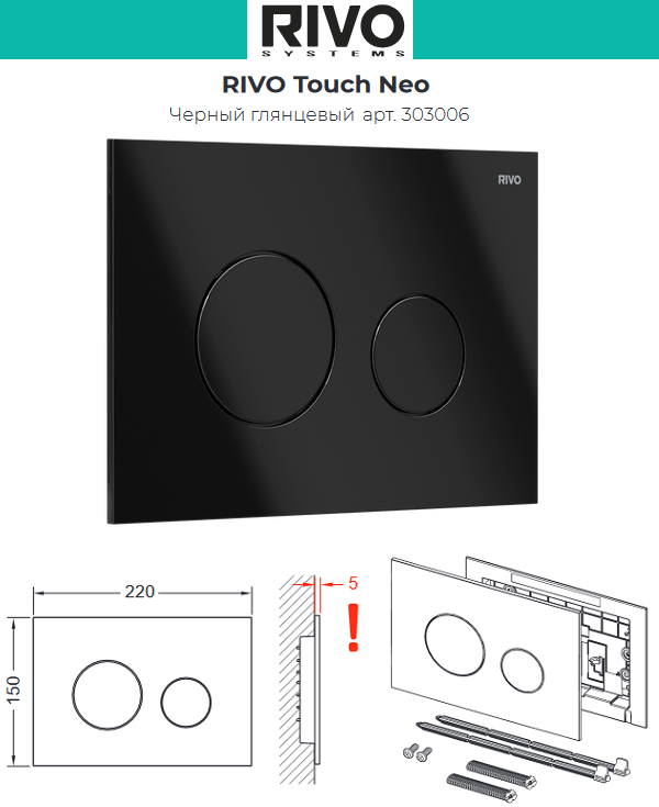 Клавиша смывная Rivo Touch Neo черный глянцевый (303006)