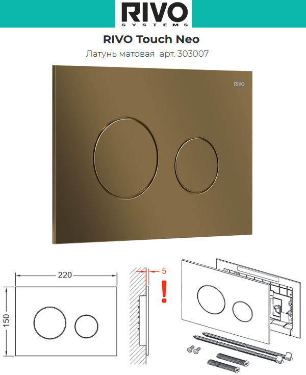 Клавиша смывная Rivo Touch Neo латунь матовая (303007)