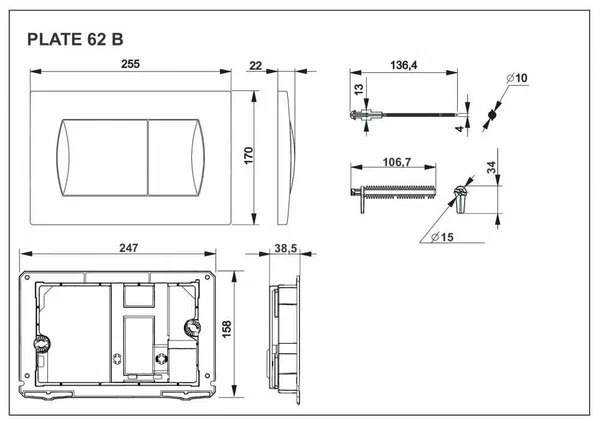 Клавиша смывная Roca Active Pl 62B хром глянец (ПЭК) (8901160B1)
