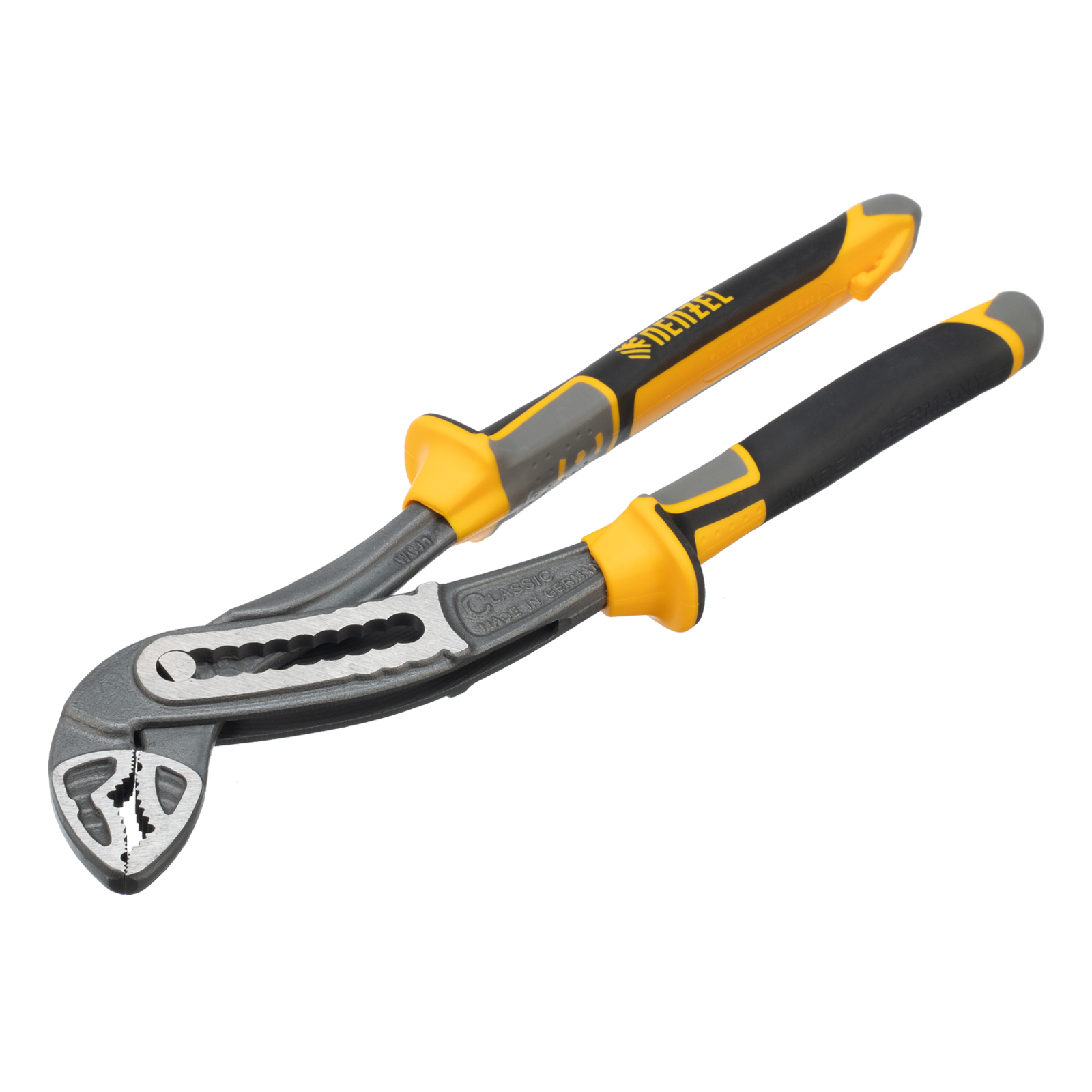 Переставные клещи Denzel 17900 длиной 240 мм, с трехкомпонентными рукоятками, предназначены для фиксации и вращения деталей и заготовок различной формы. Подходят для захвата фитингов, труб, крепежных элементов. Инструмент используется при проведении ремонтных, монтажных, сантехнических работ.