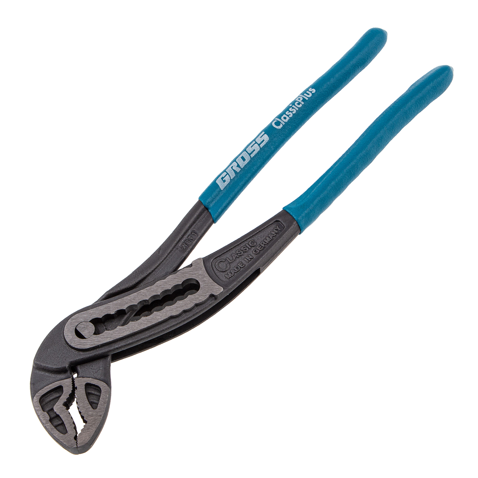 Переставные клещи Gross 15715 длиной 240 мм, из хром-ванадия, с обливными рукоятками, — универсальный инструмент для вращения, монтажа/демонтажа деталей округлой формы: труб, фитингов, гаек и т.д. С его помощью можно ускорить слесарные-монтажные, сантехнические работы даже в труднодоступных местах.