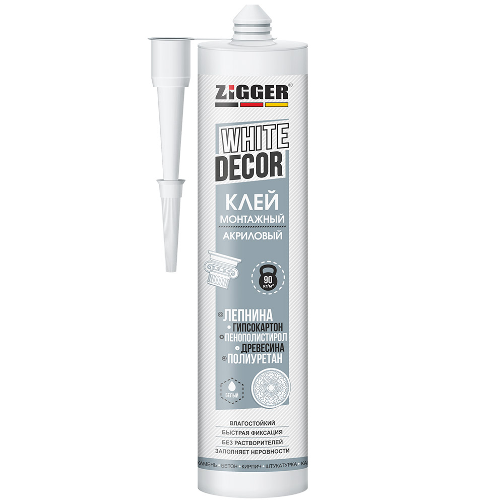Клей ZIGGER WHITE DECOR акриловый для декора белый 03-02-17, 03-02-16 монтажный клей на акриловой основе.