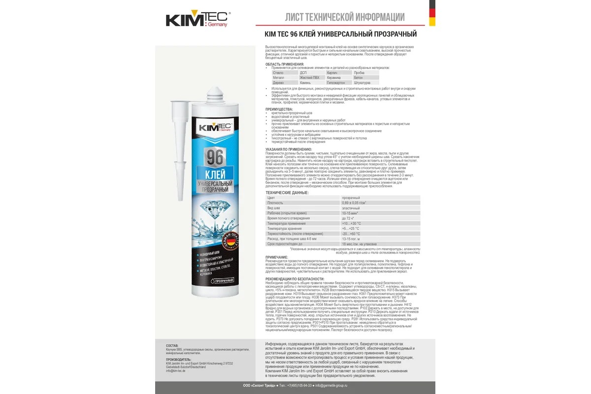 Клей жидкие гвозди KIM TEC 96 универсальный прозрачный шов 280 мл 03-01-96 высокотехнологичный многоцелевой монтажный клей на основе синтетических каучуков в органических растворителях.