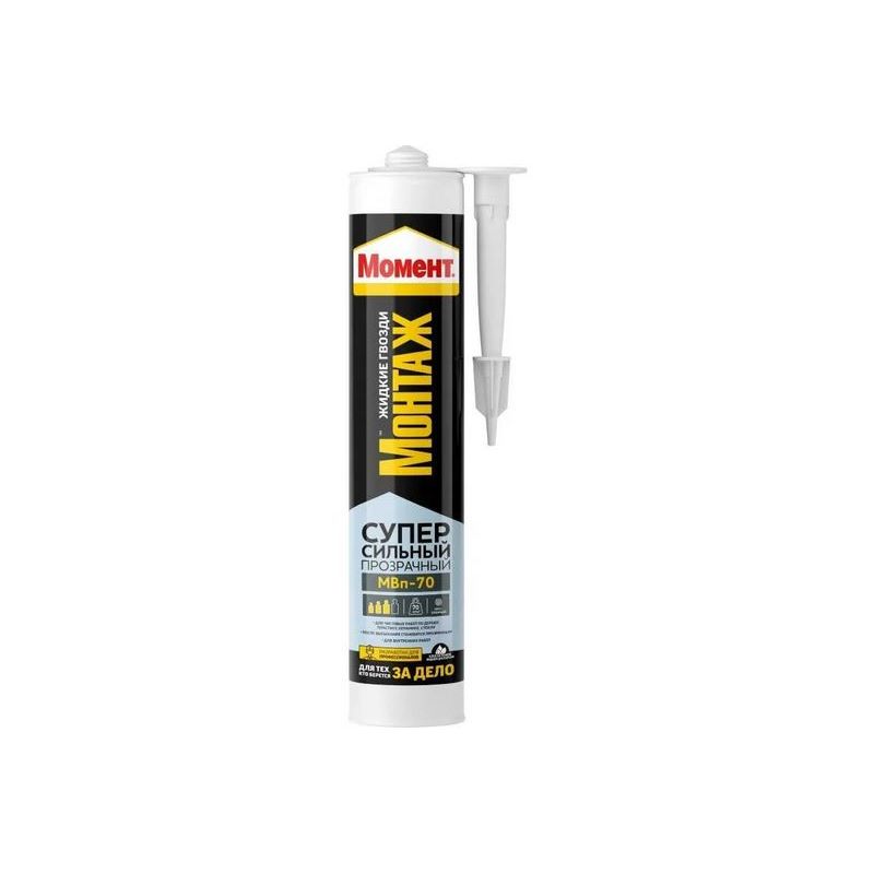 Момент Монтаж Суперсильный МВп-70 становится прозрачным после высыхания обладает высокой начальной силой склеивания (70 кг/м2) и отлично подходит для различных ремонтных работ.