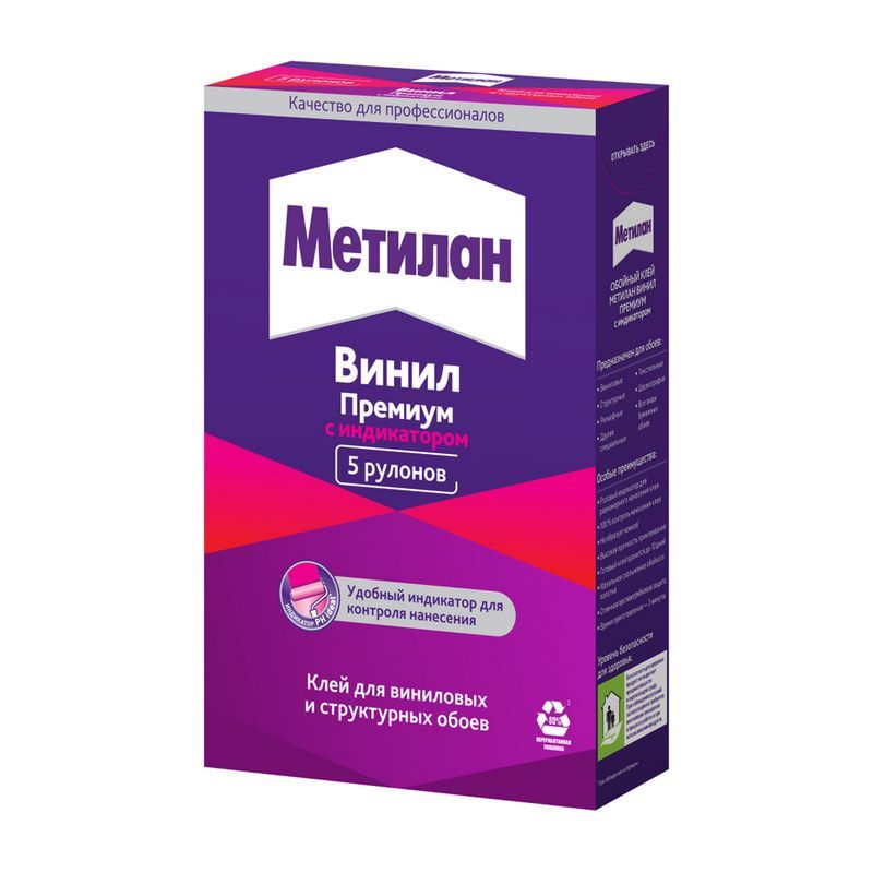 Предназначен для виниловых, структурных, рельефных, текстильных и других специальных обоев, шелкографии, а также для всех видов бумажных обоев. Впервые используется цветовой индикатор, позволяющий отслеживать равномерность нанесения клеевого слоя, что дает возможность избежать непроклеенных участков! В процессе высыхания клей становится прозрачным.