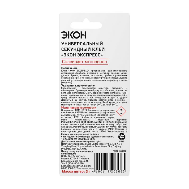 Клей секундный Экон Эспресс 3 г. (шоу-бокс) (3001043)