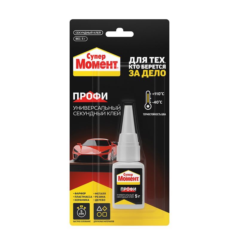 Клей секундный Супер Момент Универсальный Профи Прозрачный 5 г. (на блистере) (3040006)