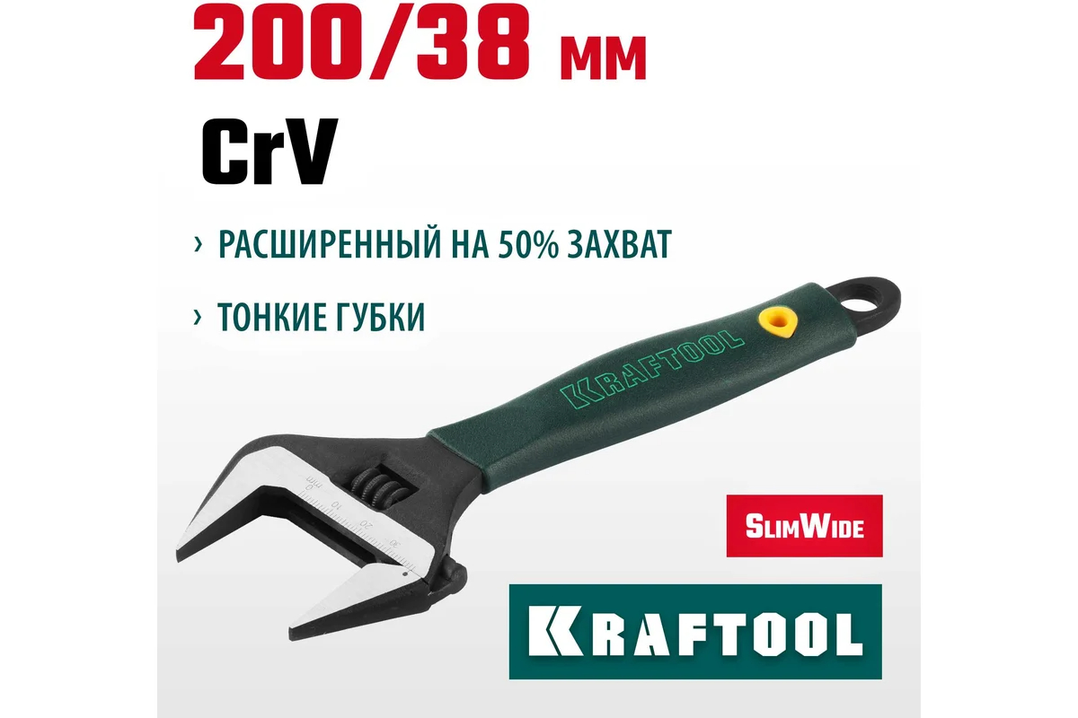 Ключ разводной SlimWide 200*38 мм 8" Kraftool (27258-20)