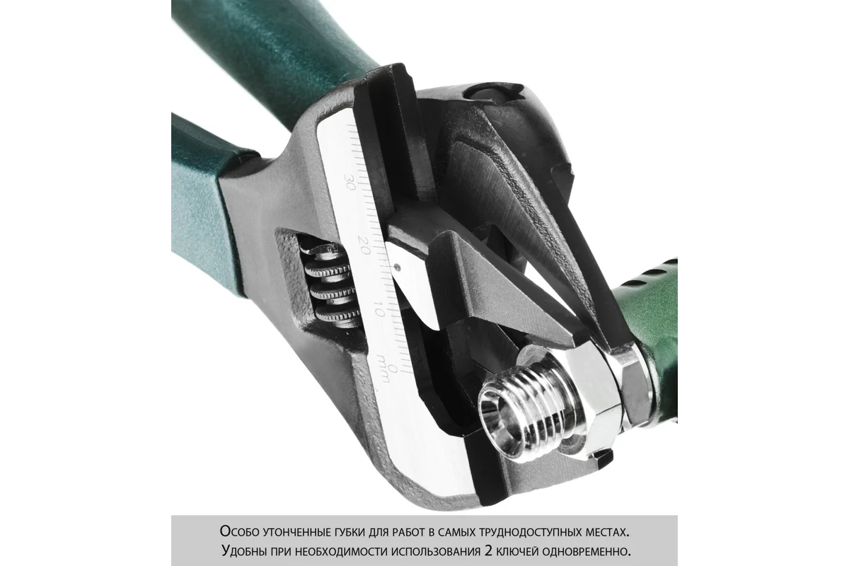 Ключ разводной KRAFTOOL 27263-20, предназначен для вкручивания и выкручивания резьбовых соединений с расширенным диапазоном шестигранных профилей болтов и гаек. Утонченные губки для работ в самых труднодоступных местах. Эргономичная противоскользящая рукоятка обеспечивает надёжный хват. Изготовлен из высококачественной хромованадиевой стали с фосфатированным покрытием. Улучшенная конструкция губок позволяет работать в труднодоступных местах. Увеличенный захват зева позволяет работать с крепежом большого размера.