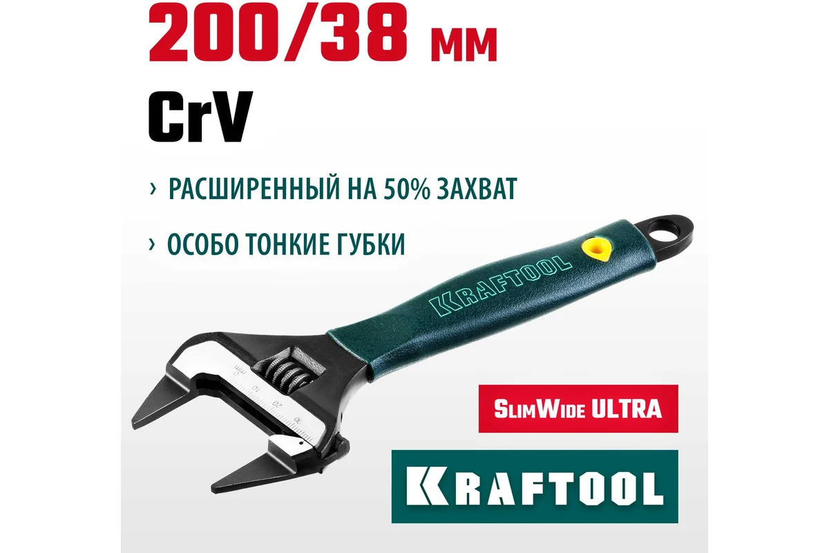 Ключ разводной SlimWide Ultra 200*38 мм Kraftool (27263-20)
