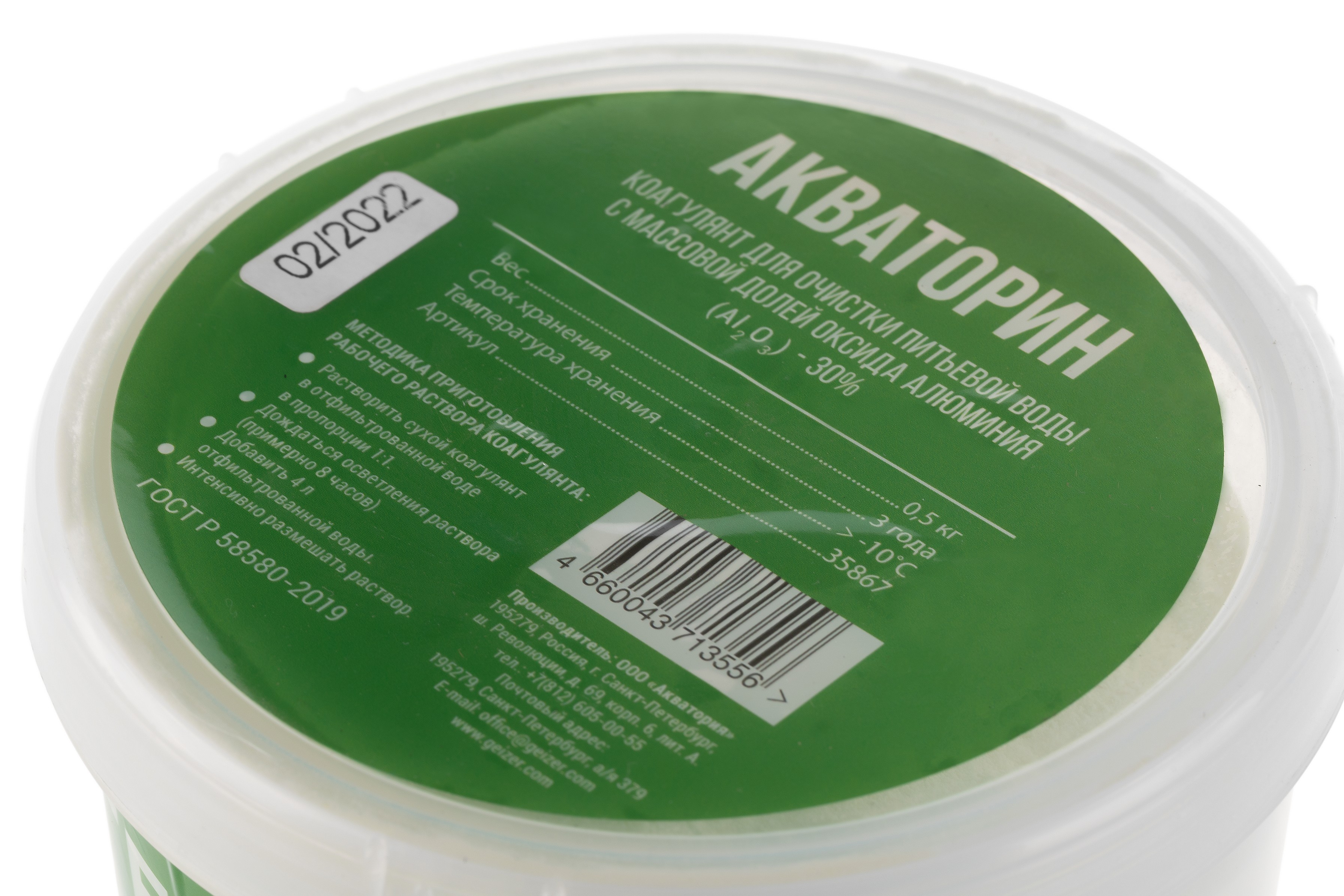 Гейзер Акваторин (0,5 кг) - коагулянт для очистки питьевой воды с массовой долей оксида алюминия (AL₂O₃) 30%.