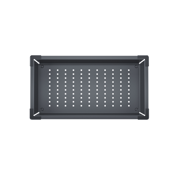 Коландер, цвет - графит. Размеры:426*231*90. Материал - 304 нерж. сталь, ABS-пластик (углы, ножки). 2 набора съемных уголков.
