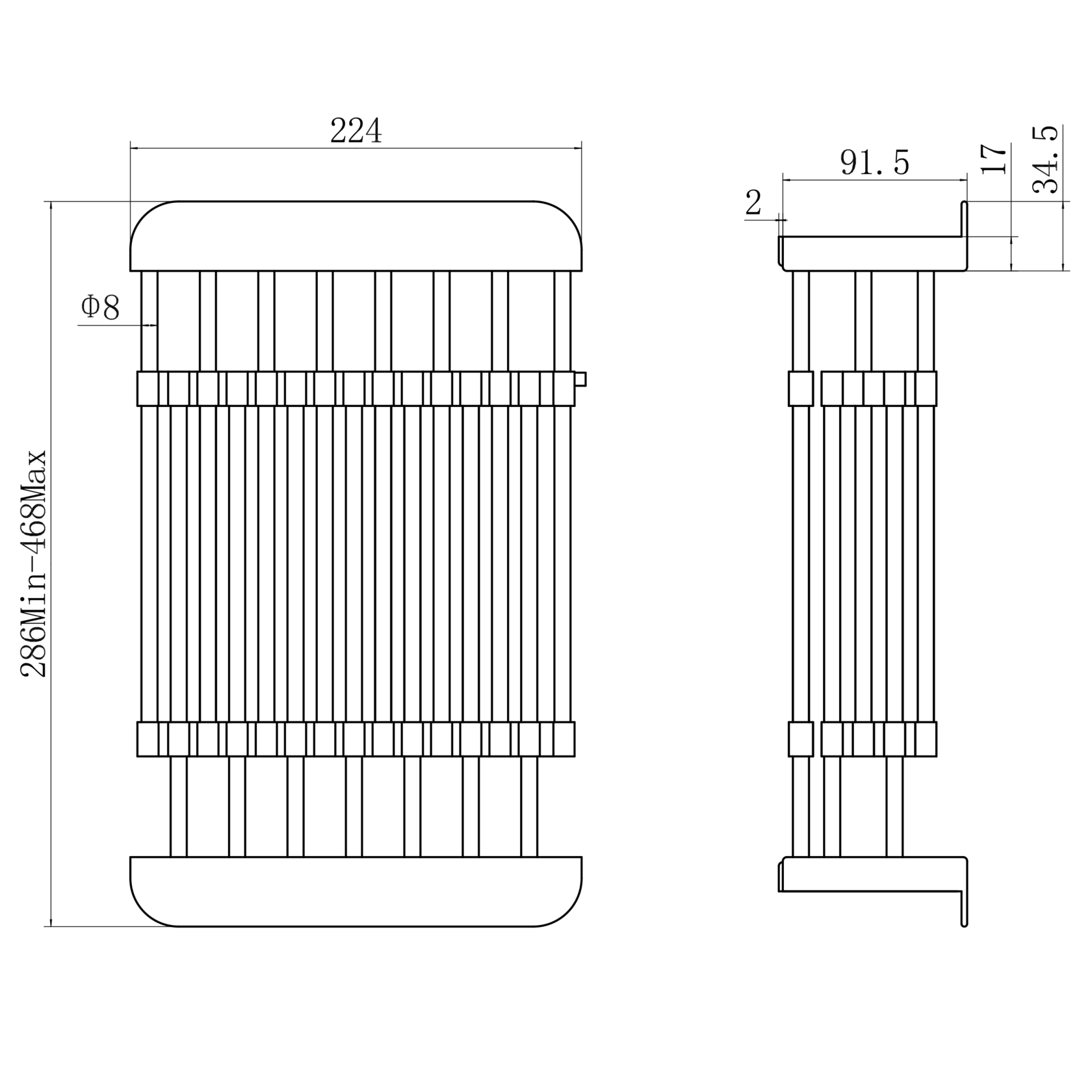 длинна: мин. 286мм., макс. 468мм.