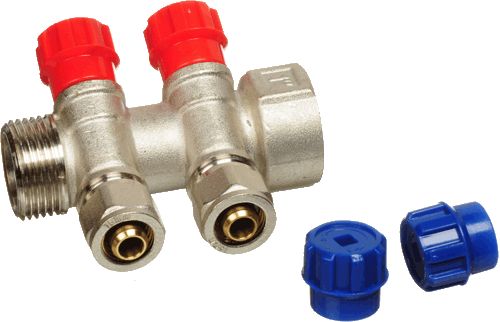 Коллекторы латунные для металлопластиковых труб предназначены для распределения рабочего потока между отдельными приборами или частями системы водоснабжения. Могут использоваться на трубопроводах холодного (в том числе питьевого) и горячего водоснабжения, отопления, а также на технологических трубопроводах, транспортирующих жидкости не агрессивные к материалам коллектора. Коллекторы с вентильными кранами дают возможность отключать отдельные эле- менты/приборы системы. Также допускается возможность регулировки расхода рабочего потока с помощью вентелей. Диаметр входного патрубка 1"" с внутренней и наружной резьбой, с двумя шаровыми кранами и конусами 16 мм (1/2"") для соединения с металлопластиковой трубой.