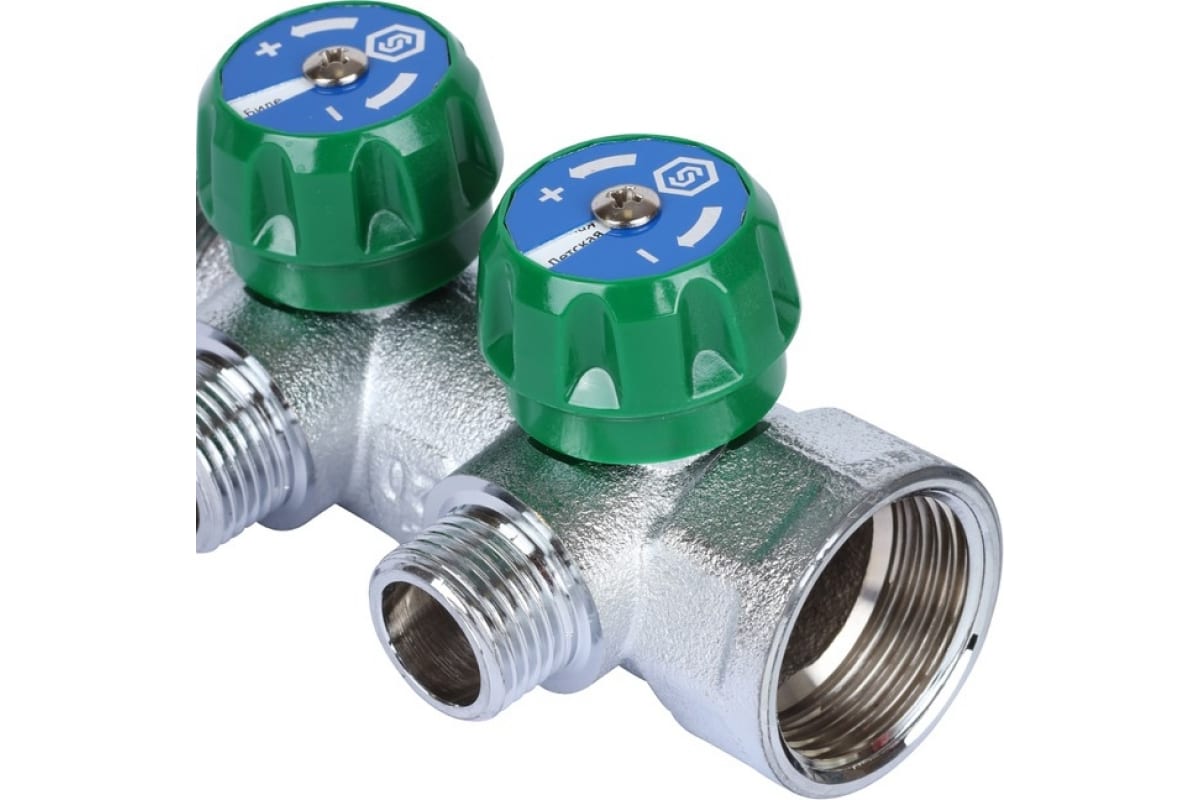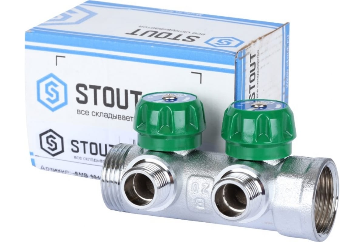 Регулирующий коллектор STOUT плоское уплотнение SMB-6849 предназначен для параллельного присоединения отдельных санитарно-технических приборов к магистральным трубопроводам систем холодного и горячего водопровода. На ответвлении коллектора установлены вентили для отключения потребителей и регулирования напора воды.