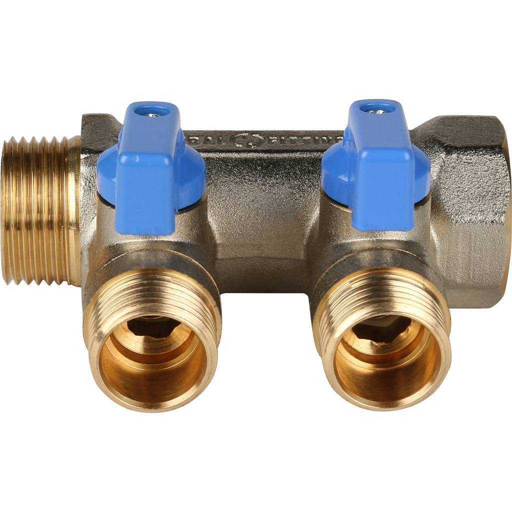 Коллектор 2 отвода с шаровыми клапанами 3/4"x1/2"(16) Stout (латунь, синие ручки) (SMB-6201-341202)