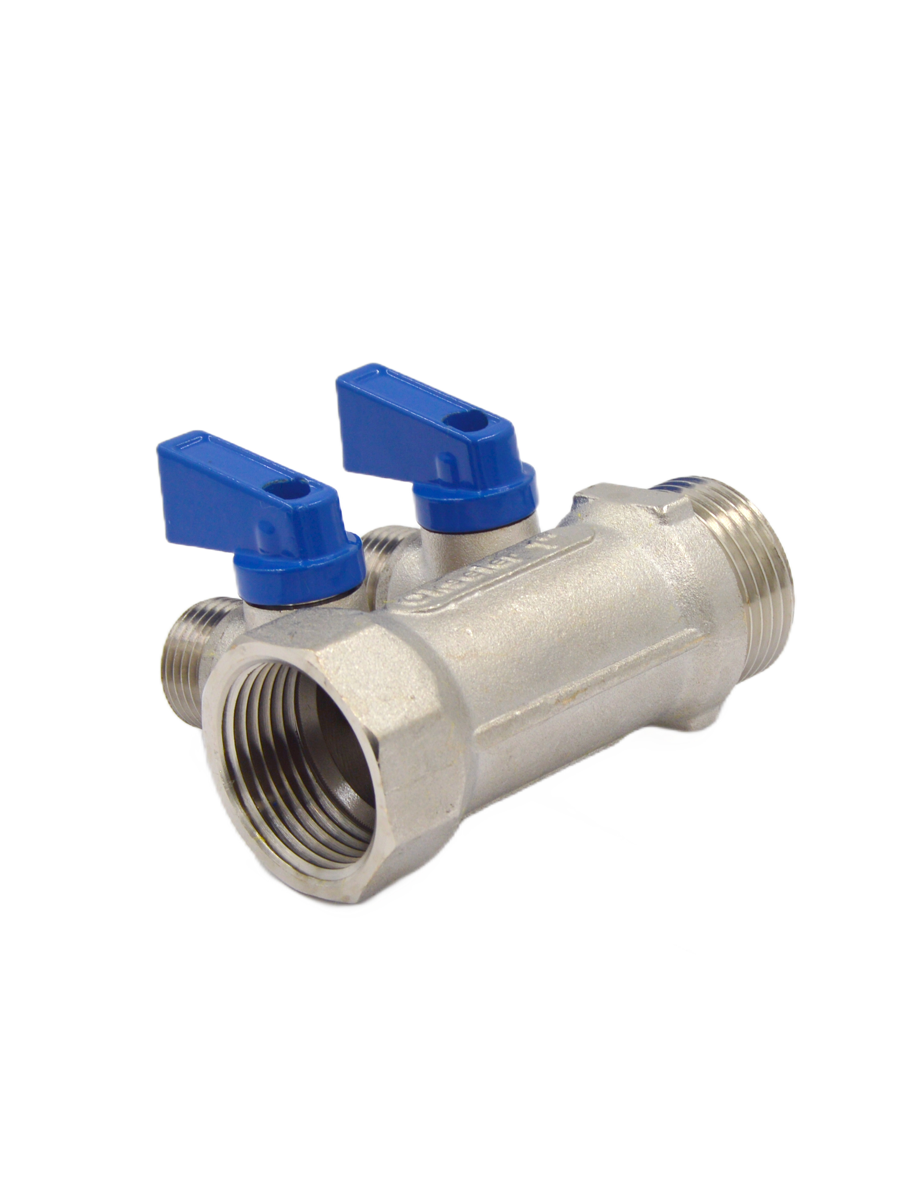 Коллектор 2 отвода с шар. клапанами 1х1/2"(16) Okseler (никель) (oks00404)