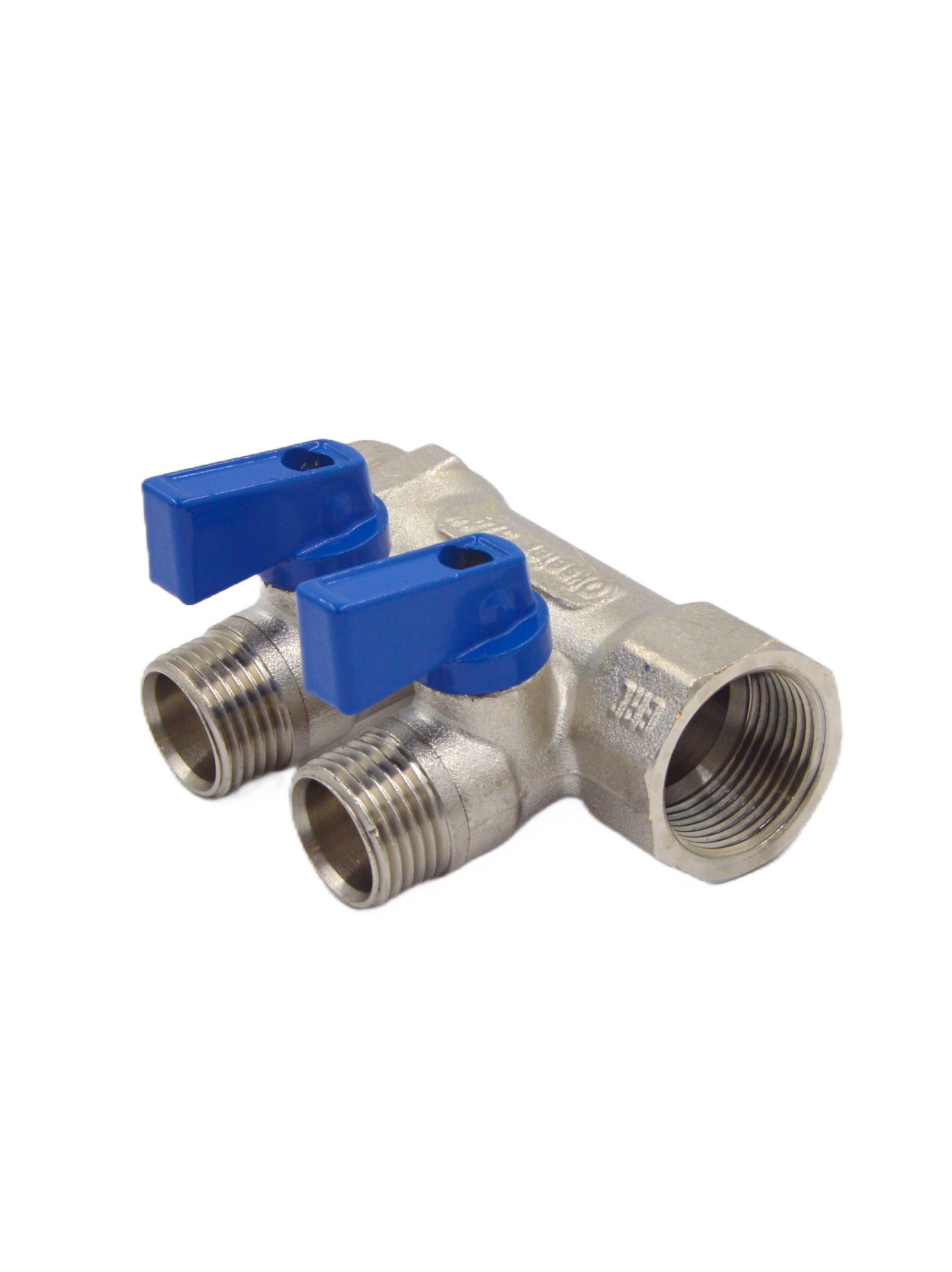 Коллектор 2 отвода с шар. клапанами 3/4х1/2"(16) Okseler (никель) (oks00401)