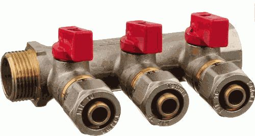 Коллекторы латунные для металлопластиковых труб предназначены для распределения рабочего потока между отдельными приборами или частями системы водоснабжения. Могут использоваться на трубопроводах холодного (в том числе питьевого) и горячего водоснабжения, отопления, а также на технологических трубопроводах, транспортирующих жидкости не агрессивные к материалам коллектора. Коллекторы с шаровыми кранами дают возможность отключать отдельные эле- менты/приборы системы. Диаметр входного патрубка 3/4"" с внутренней и наружной резьбой, с тремя шаровыми кранами и конусами 16 мм (1/2"") для соединения с металлопластиковой трубой. Не предназначены для регулировки расхода рабочего потока системы водоснабжения.