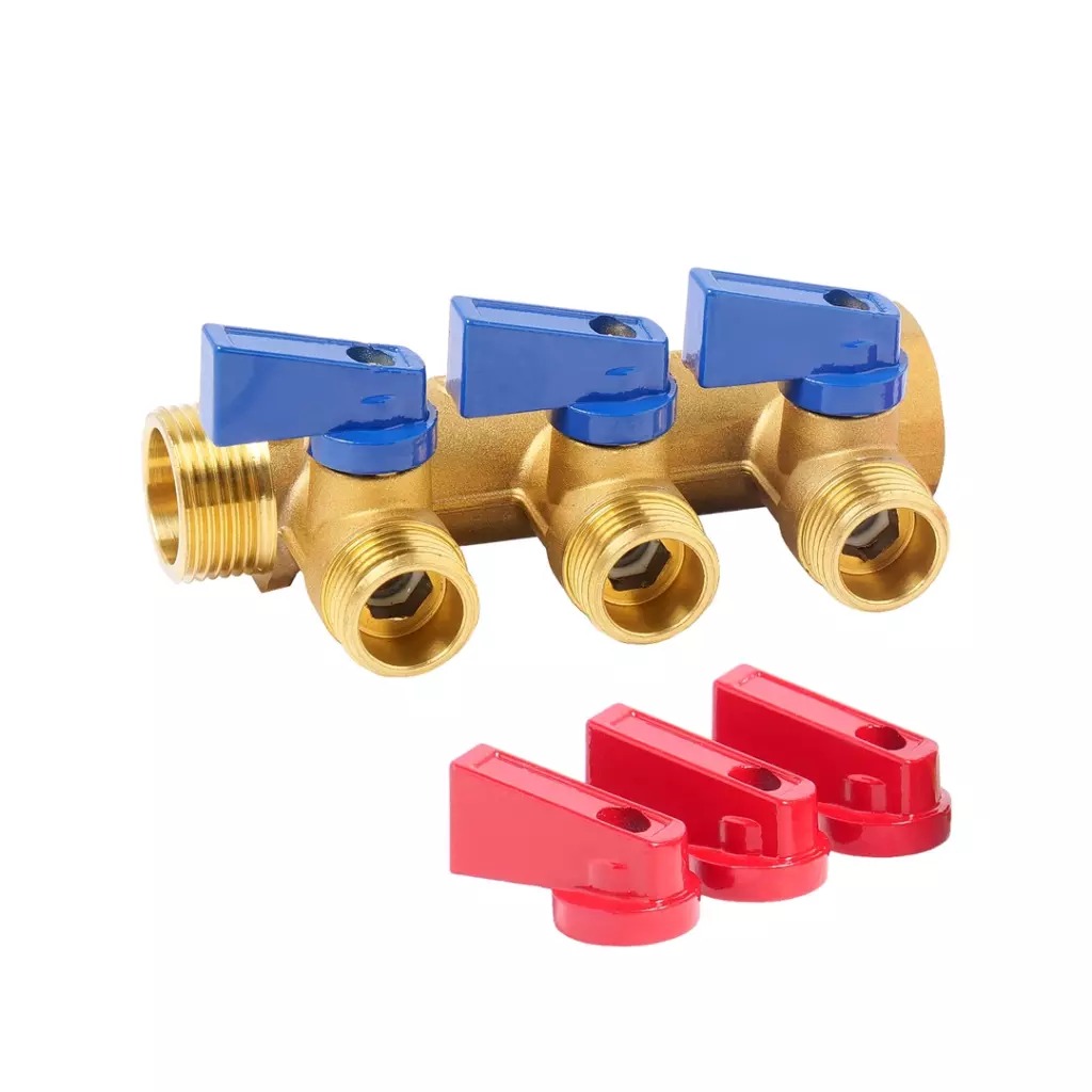 Коллектор 3 отв. с шар. клапанами 3/4*1/2" Vieir (латунь) (VR713)
