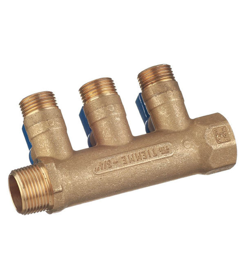 Предназначен для равномерного распределения и поступления воды от главного трубопровода по металлопластиковым трубам к сантехнике и другим потребителям без потери напора воды. Позволяет изолировать часть системы в случае неисправностей и проводить ремонт, не производя при этом общего отключения водоснабжения. Используется для разделения потока воды из одной трубы на две линии. Имеет с одного входа внутреннюю резьбу 3/4" с другого входа наружную резьбу 3/4", что позволяет соединять коллекторы между собой, увеличивая количество отводимых линий. Ручки синего цвета. Межосевое расстояние между отводами 36 мм.
