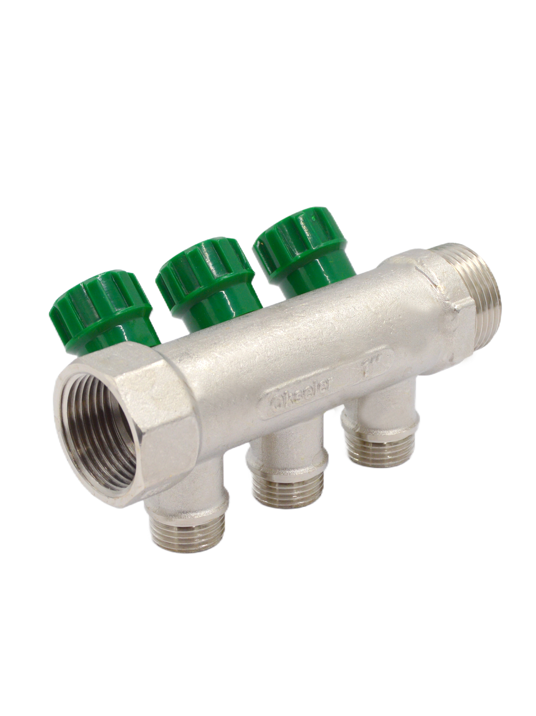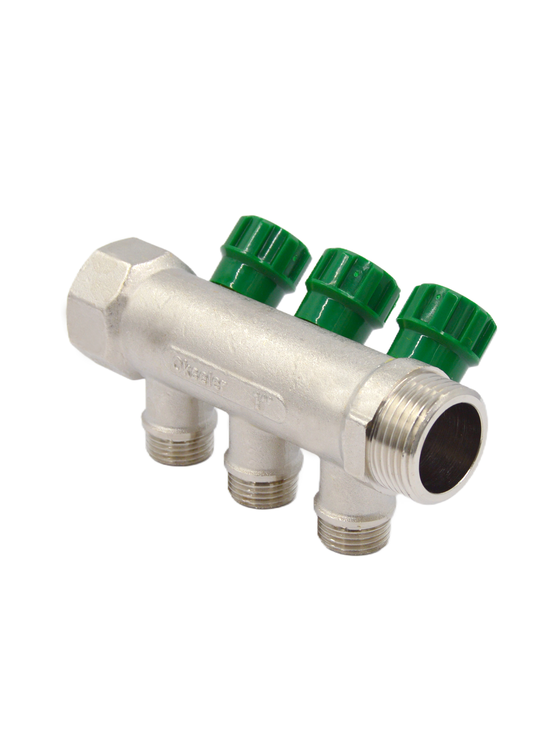 Коллекторы Okseler с тремя регулирующими вентилями обеспечивают равномерное распределение транспортируемой среды между несколькими потребителями. Эти изделия подходят для систем холодного (в том числе питьевого) и горячего водоснабжения, а также для отопительных систем на подающем трубопроводе.