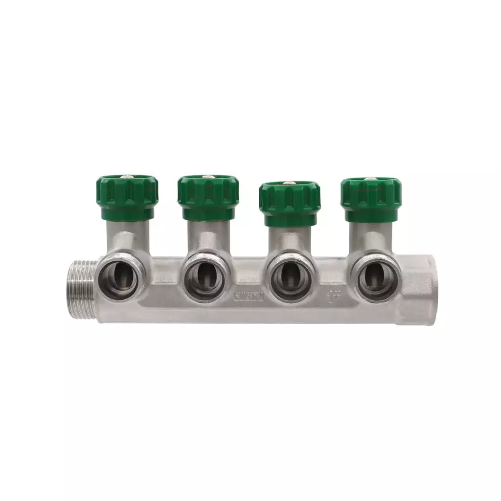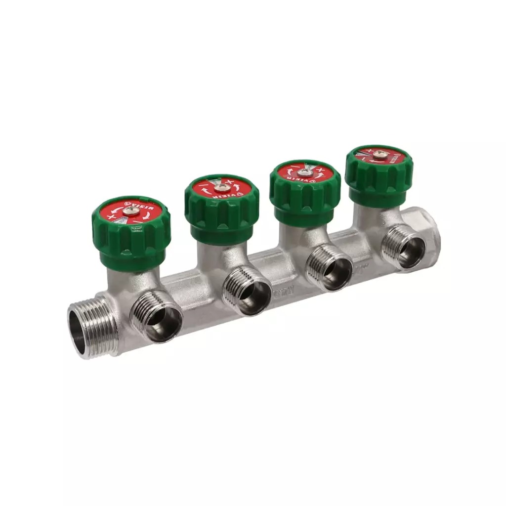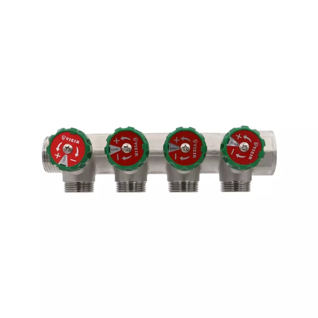 Коллектор 4 отв. регулируемый 1"*3/4(18) евроконус Vieir (никель) (VR526-4)