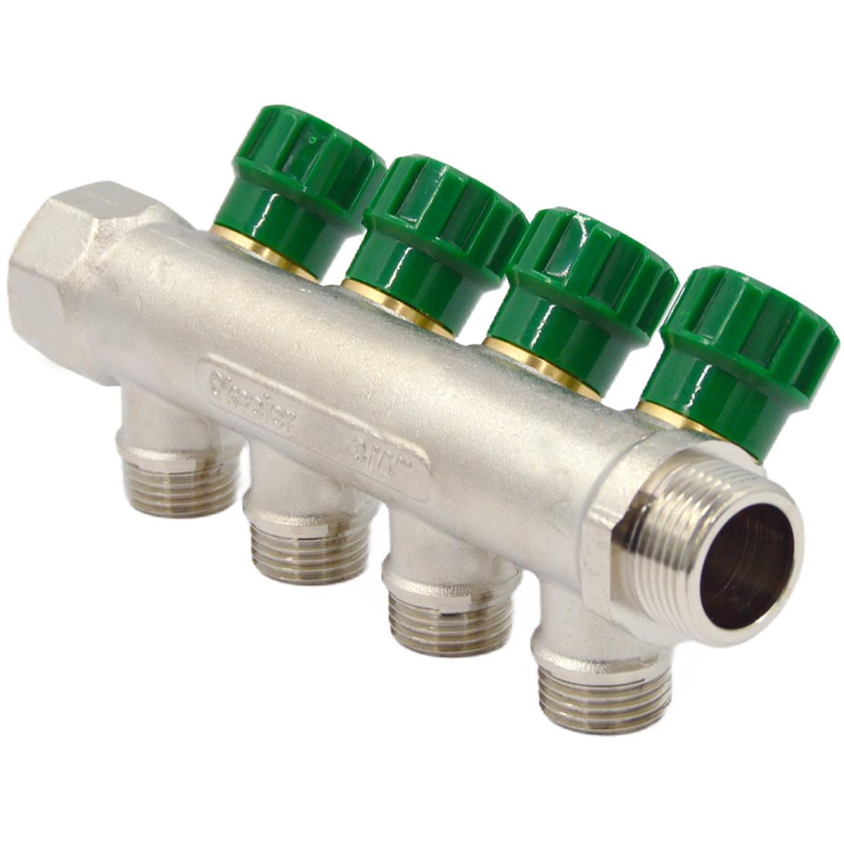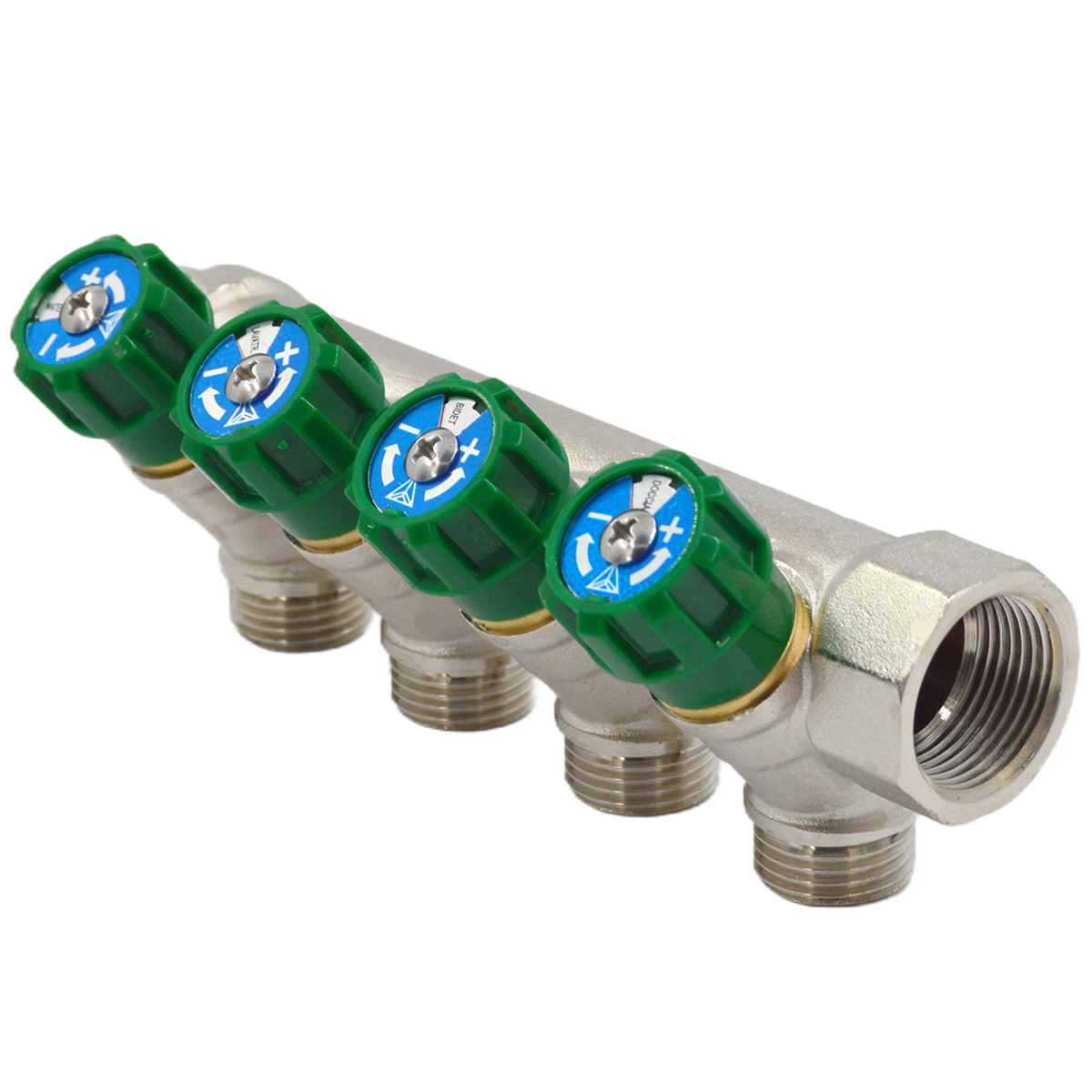 Латунные коллекторы Okseler с регулирующими вентилями 1""х1/2"" на 4 выхода — оптимальное распределение потоков в системе