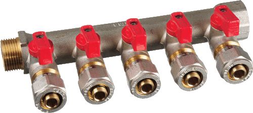 Коллекторы латунные для металлопластиковых труб предназначены для распределения рабочего потока между отдельными приборами или частями системы водоснабжения. Могут использоваться на трубопроводах холодного (в том числе питьевого) и горячего водоснабжения, отопления, а также на технологических трубопроводах, транспортирующих жидкости не агрессивные к материалам коллектора. Коллекторы с шаровыми кранами дают возможность отключать отдельные эле- менты/приборы системы. Диаметр входного патрубка 3/4"" с внутренней и наружной резьбой, с 5-ю шаровыми кранами и конусами 16 мм (1/2"") для соединения с металлопластиковой трубой. Не предназначены для регулировки расхода рабочего потока системы водоснабжения.